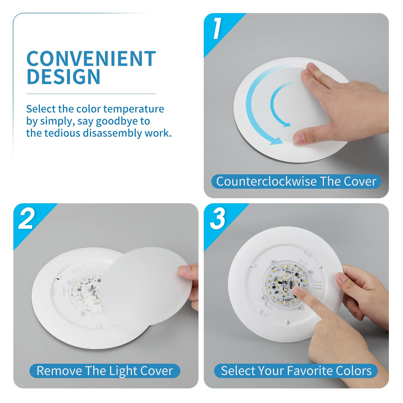 ECOELER 6-Inch Dimmable LED Disk Light, 15W, 1000lm, 3000K/4000K/5000K Selectable, Aluminum,