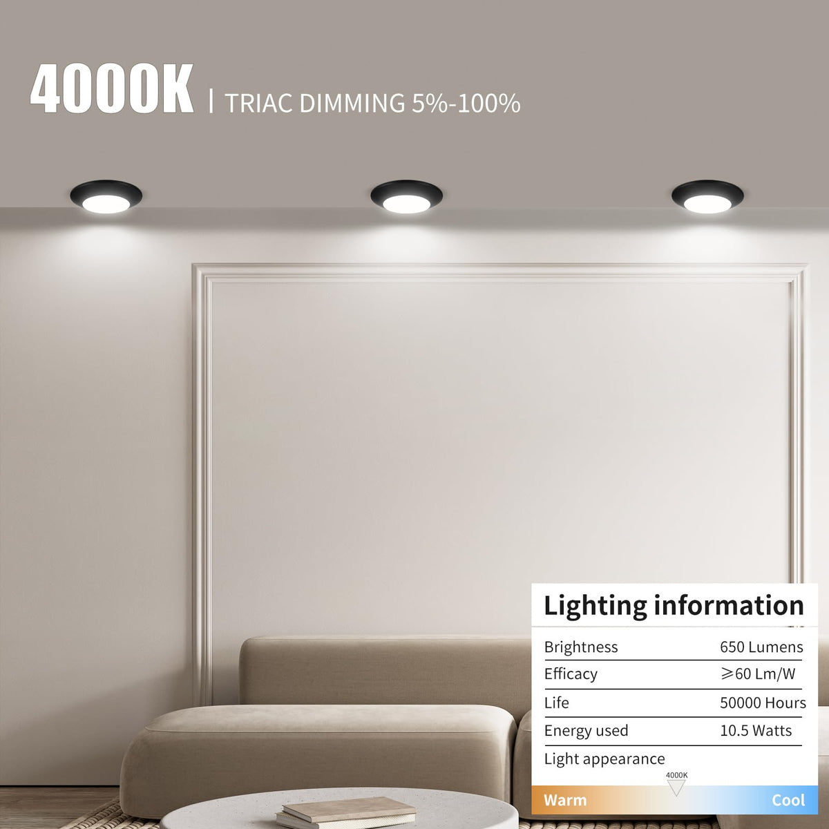 Introducing The Ecoeler Led Recessed Downlight, A Premium Lighting Solution That Combines Contemporary Design With Cutting-Edge Technology. This Surface Mount Led Ceiling Light, Featuring A Sleek Black Aluminum Trim, Is Crafted To Seamlessly Enhance Your Kitchen Or Bathroom With Its Superior Performance And Modern Aesthetics.Sophisticated Design:Elevate Your Space With The Stylish Black Aluminum Trim That Adds A Touch Of Modern Sophistication To Any Room. The Recessed Design Ensures A Sleek And Unobtrusive Appearance On Your Ceiling.Versatile Illumination:Emitting A Cool White Light, This Dimmable Downlight Provides A Crisp And Refreshing Ambiance. Perfect For Kitchens And Bathrooms, It Enhances Visibility And Complements Contemporary Decor Seamlessly.Adjustable Brightness:Tailor The Lighting To Your Preference With The Dimmable Feature. From Bright And Invigorating To Soft And Ambient, The Led Downlight Allows You To Create The Perfect Atmosphere For Any Occasion.Efficient Performance:With A Power Consumption Of Just 10.5W, This Led Downlight Delivers An Impressive 650 Lumens, Ensuring Energy Efficiency Without Compromising On Brightness. Etl Certifications Guarantee Top-Notch Performance And Adherence To Industry Standards.Surface Mount Convenience:The Surface Mount Fixture Simplifies Installation, Making It An Ideal Lighting Solution For Kitchens And Bathrooms. Enjoy The Convenience Of A Hassle-Free Setup Without Sacrificing Style.Applications:Ideal For Both Residential And Commercial Spaces, The Led Dimmable Recessed Downlight Is Specifically Designed For Kitchens And Bathrooms. Its Adaptable Design And Adjustable Brightness Make It A Versatile Lighting Solution For Various Settings.Upgrade Your Lighting Experience With The Ecoeler Led Dimmable Recessed Downlight - Where Modern Elegance Meets Functional Brilliance. Illuminate Your Space With Confidence And Style.