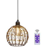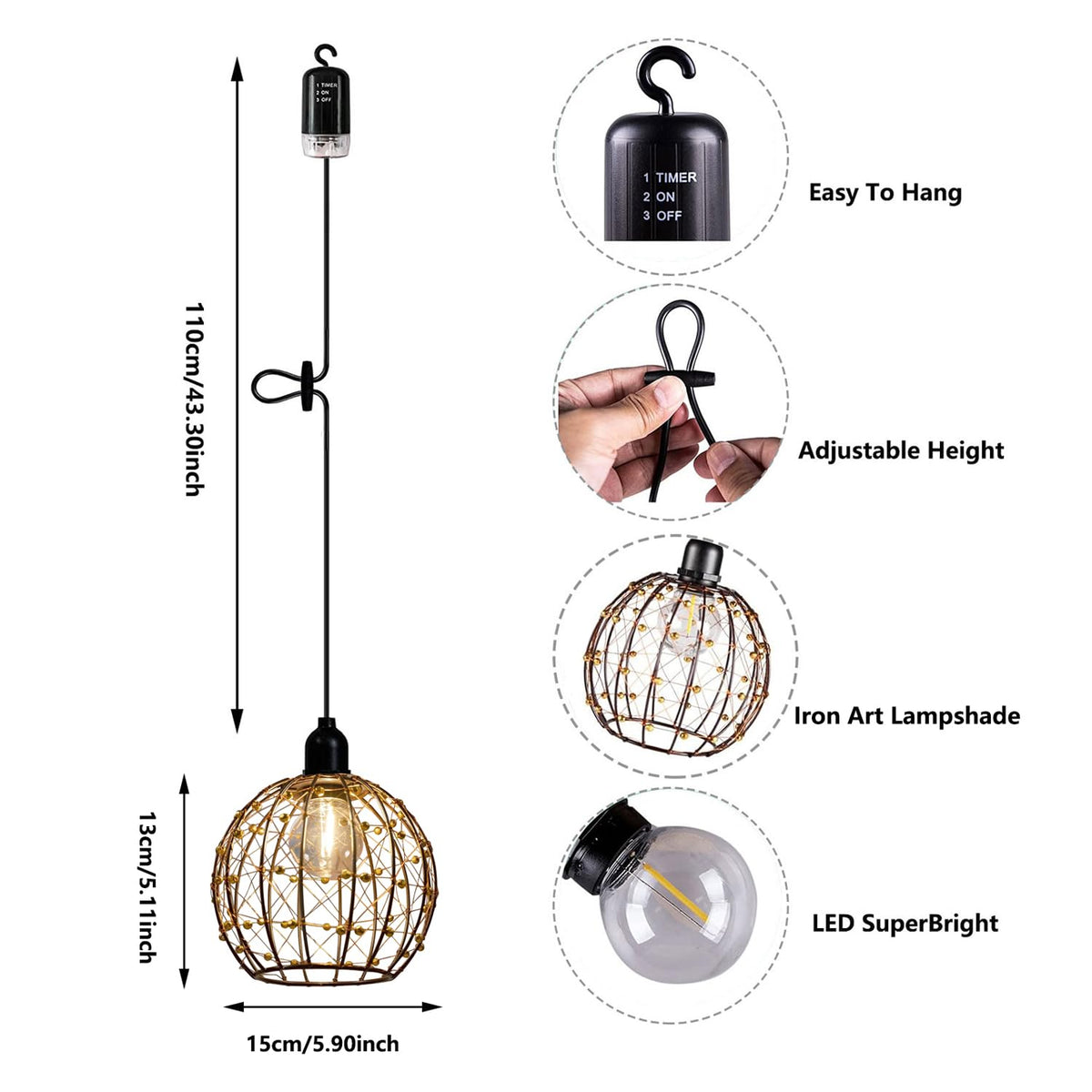 EcoGehen Battery Operated Pendant Lights Kitchen Island Decorative Chandelier for Gazebo Hanging Lamp with Remote Timer LED Bulbs Metal Globe Shade Lantern for Farmhouse Bedroom Porch Powered by 4*AA