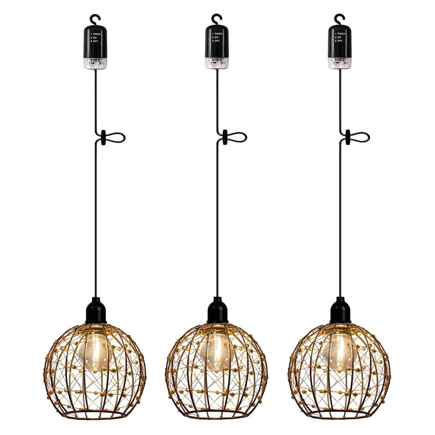 Ecogehen Battery Operated Pendant Lights Kitchen Island Decorative Chandelier For Gazebo Hanging Lamp With Remote Timer Led Bulbs Metal Globe Shade Lantern For Farmhouse Bedroom Porch Powered By 4*Aa