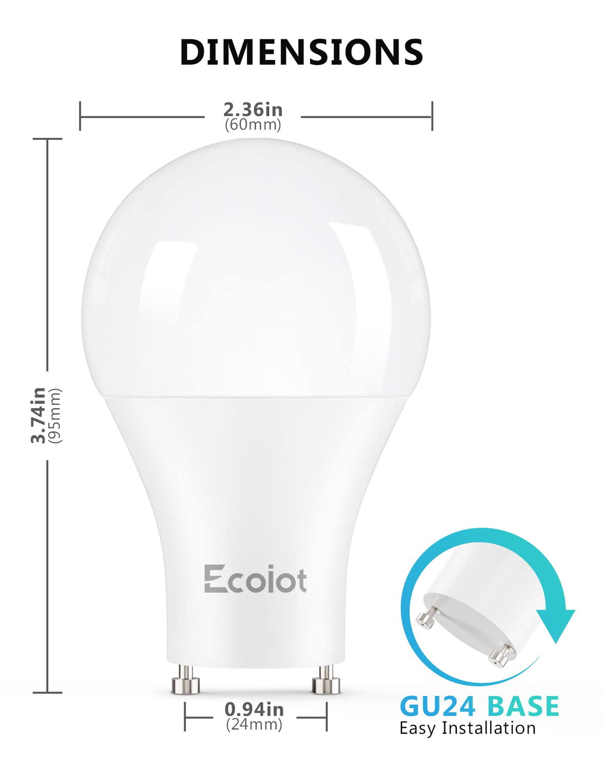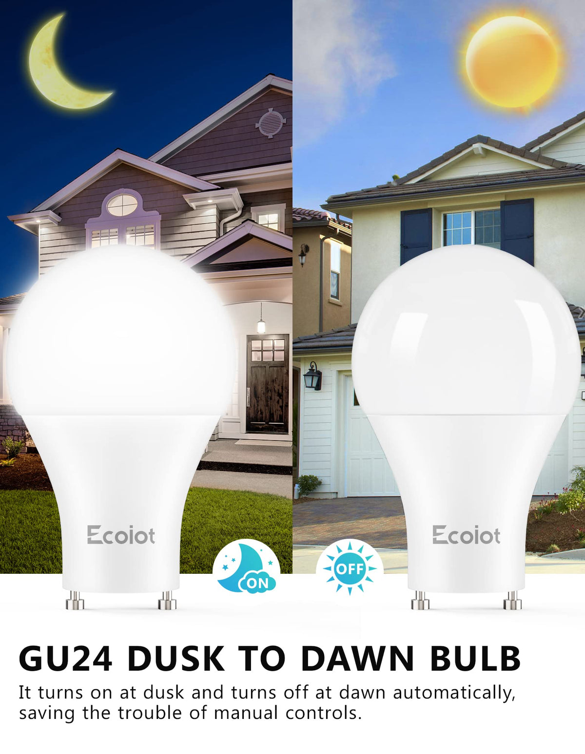 Ecoiot Gu24 Dusk To Dawn Outdoor Light Bulbs,Light Sensor A19 Led Bulbs,Photocell Sensor, Automatic On/Off For Indoor/Outdoor Security Lighting,10-Watt(90-Watt Equivalent),5000K Daylight, 4 Pack