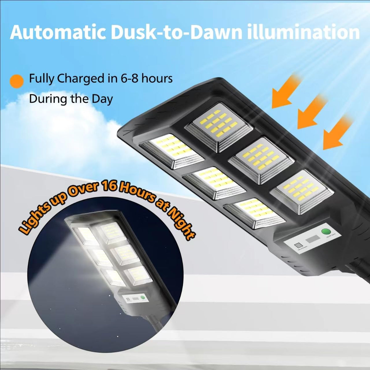 [Super Bright Motion Sensor Solar Street Lights]: EcoJLigOas solar street lights feature super-bright 5730-type LED beads, delivering an impressive 15,000 lumens to brilliantly illuminate your yard, garage, parking lot, and streets, ensuring outstanding nighttime visibility. With a working lifespan of over 6 years, they are designed for lasting performance. [IP66 Waterproof & Easy Installation]: EcoJLigOas outdoor solar lights are designed for hassle-free installation with just two screws – no wires or complications. With a recommended mounting height of 10-14 feet, these robust fixtures are crafted to endure heavy rain and snowstorms. This durability is attributed to their IP66 waterproof design and high-quality ABS material construction. [Remote Control & 3 Lighting Modes]: EcoJLigOas solar outdoor lights are equipped with a wireless remote control, allowing you to conveniently choose from multiple modes:?Motion Sensor Mode: It operates at 100% brightness when people approach and switches to 30% brightness when they leave. ?Timed Mode: You can set it to stay on for 2/3/5/6/8 hours. After the selected time, it automatically switches to motion sensor mode. ?Normal Mode: This mode provides adjustable brightness ranging from 25% to 100%. Tailor the lighting to your preference with ease. [Solar Powered & HIGH-EFFICIENCY & 0 Electricity Bill]: EcoJLigOas Solar Security Flood Light, powered by a 6V/5W solar panel, energy conversion rate up to 22%. The 5000mAh battery charges fully during the day, providing over 16 hours of illumination at night..Every sunbeam is harnessed, effectively turning sunlight into power and saving you on electricity costs. [WORRY-FREE WARRANTY]: EcoJLigOas offer a reliable 2 years after-sales warranty, ensuring lasting satisfaction. Should you have any inquiries about our solar powered street lights, our dedicated customer service team is at your service, responding to your questions promptly within 24 hours.