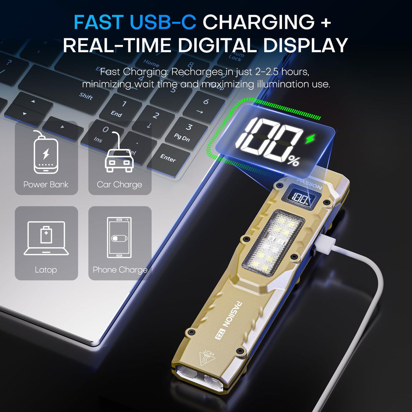 When every second matters-whether youre on patrol, camping deep in the woods, or facing an emergency-this tactical rechargeable flashlight delivers the performance and reliability professionals and prepared users demand. Designed with dual independent switches, it gives you instant access to both the main beam and the side light. No cycling through confusing menus. Even with gloves on or in the dark, you stay in complete control. The main light features five versatile modes-High, Low, SOS, Turbo (double-click), and Strobe (long-press)-powerful enough to light up a 200-meter path. Whether youre inspecting your property at night, working roadside, or signaling for help, this EDC flashlight gives you the brightness and functionality you need. The side light expands your options with white light for soft area illumination, red light for night vision, UV light for inspection, and a red strobe for emergency signaling. And thanks to the built-in mode memory, the flashlight recalls your last setting-saving time and frustration in repeated use. Its built for real-world use. The durable stainless steel housing resists corrosion and survives drops from up to 2 meters. With IPX5 waterproof protection, it keeps working through rain, splashes, and rough conditions. Charging is simple and fast via USB-C-whether youre at home, in your car, or on the go. A digital display shows the exact battery percentage and charging status, eliminating guesswork. And when youre packing or storing the light, the lockout function prevents accidental activation. Compact yet powerful, this small flashlight fits easily into your pocket, glovebox, or duty gear. Its more than a tool-its a dependable companion, built for those who refuse to be caught unprepared. Whether youre looking for a rugged pocket flashlight, a reliable tactical flashlight, or a versatile LED flashlight for daily carry, this light checks every box.