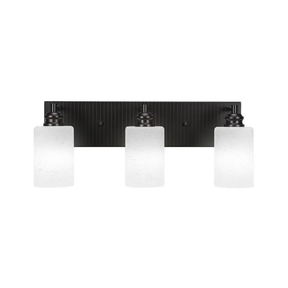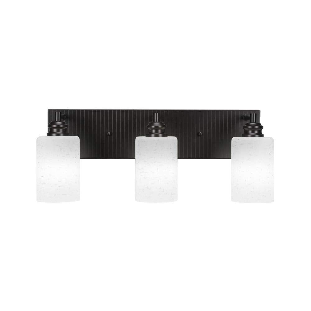 Q: What materials is the Edge 3 Light Bath Bar made from?A: The Edge 3 Light Bath Bar is constructed from alloy steel, providing durability and a modern aesthetic. It features a stylish espresso finish and white muslin glass.