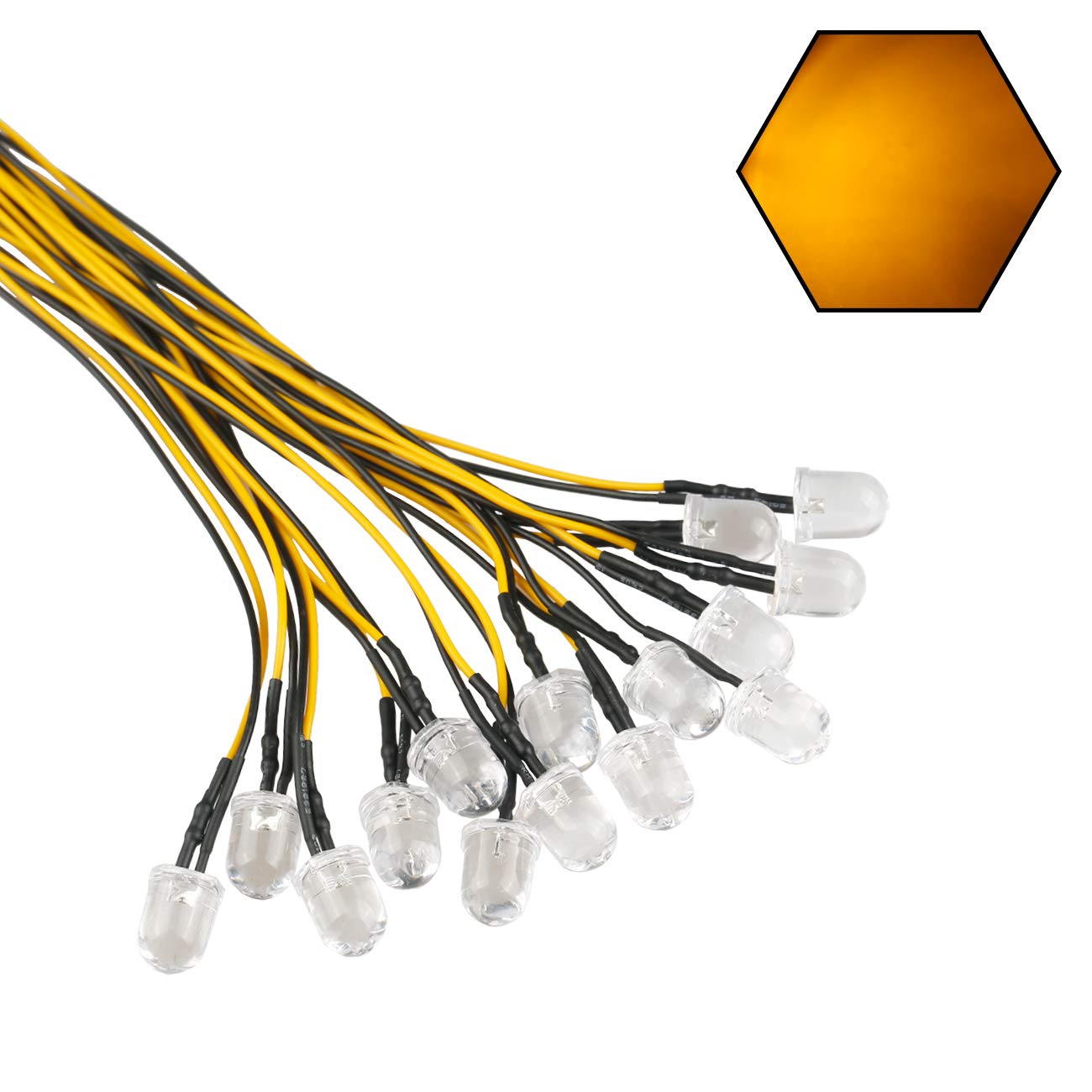 Edgelec 30Pcs 12 Volt 10Mm Yellow Led Lights Emitting Diodes Pre Wired 7.9 Inch Dc 12V Led Light Clear Lens Small Led Lamps