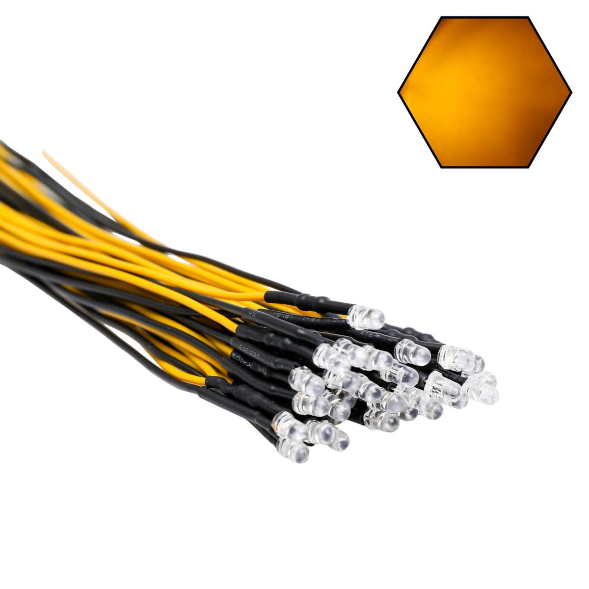 Edgelec 30Pcs 12 Volt 3Mm Yellow Led Lights Emitting Diodes Pre Wired 7.9 Inch Dc 12V Led Light Clear Lens Small Led Lamps