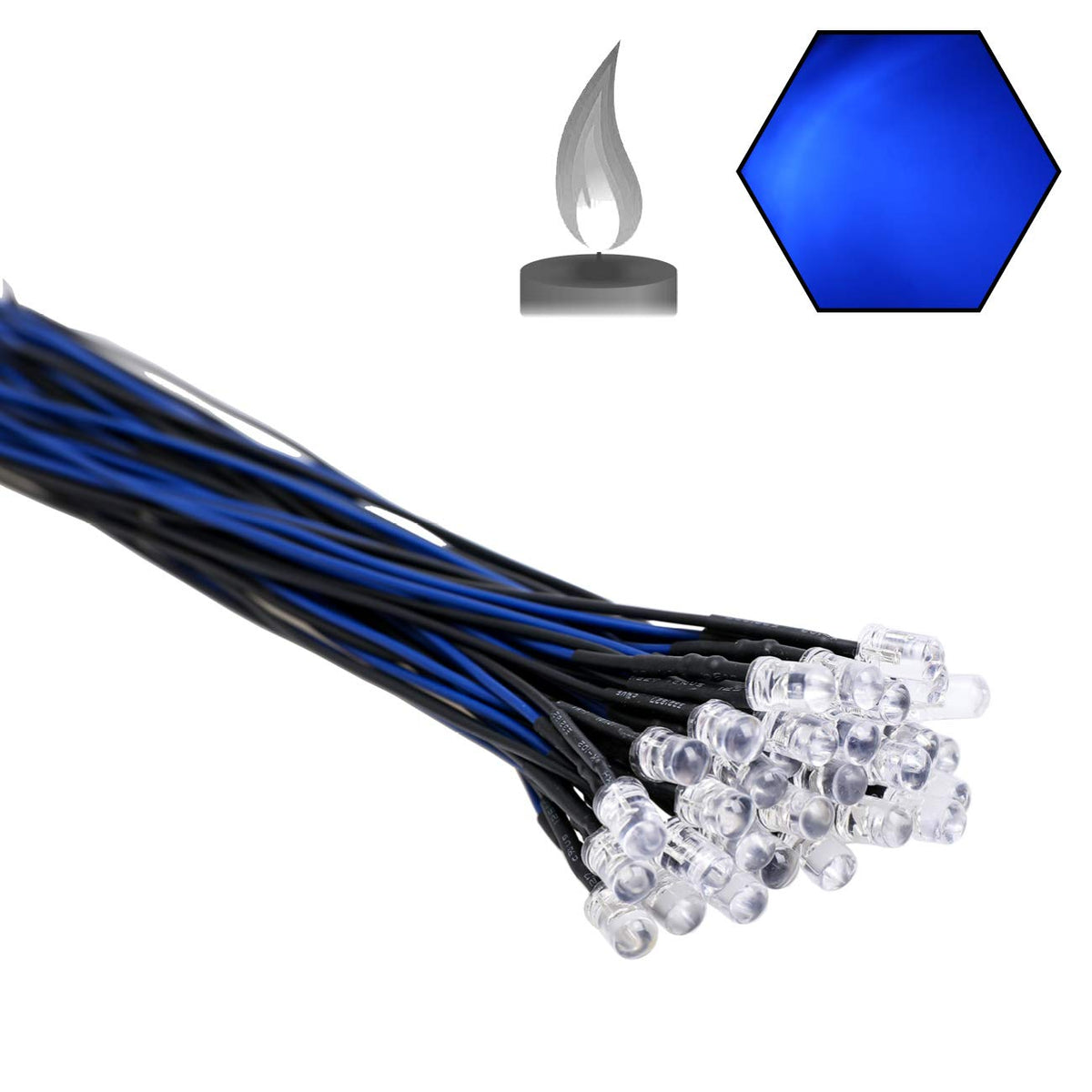 Edgelec 30Pcs 12 Volt 5Mm Blue Flicker Led Lights Emitting Diodes (Candle Flickering Lights) Pre Wired 7.9 Inch Dc 12V Led Light Clear Lens Small Led Lamps