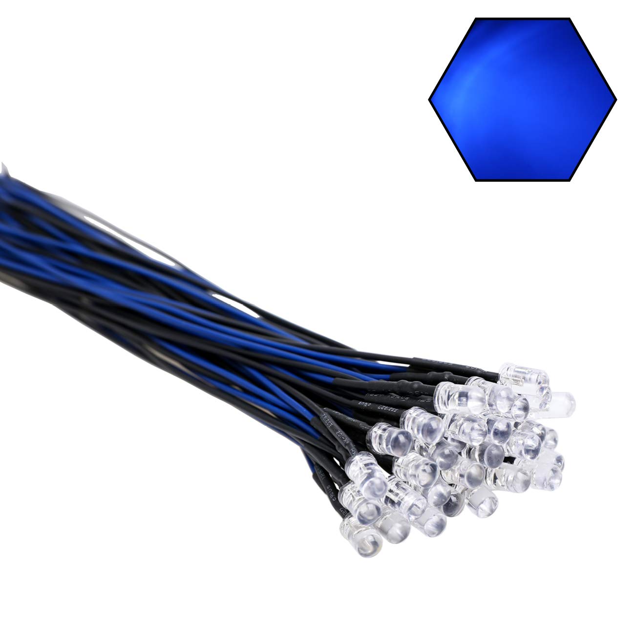 Edgelec 30Pcs 12 Volt 5Mm Blue Led Lights Emitting Diodes Pre Wired 7.9 Inch Dc 12V Led Light Clear Lens Small Led Lamps