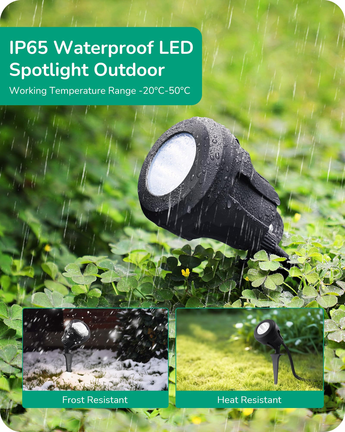 Q: How bright is the EDISHINE LED Outdoor Spotlight?A: The EDISHINE LED Outdoor Spotlight delivers 400 lumens of brightness with a color temperature of 5000K, providing excellent illumination for your lawn, trees, and garden areas.