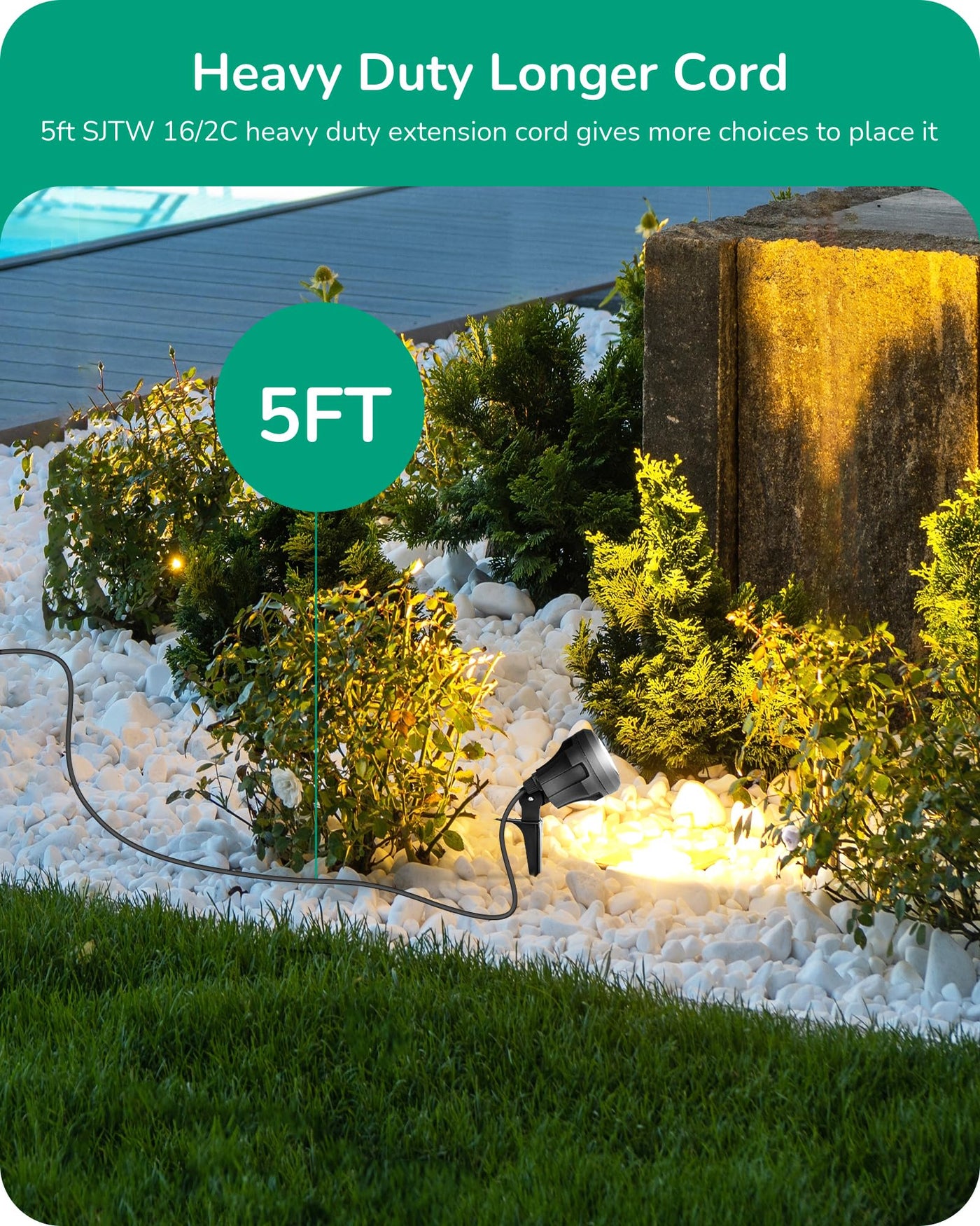 Edishine 120V Led Outdoor Spotlight, 5 Extra Lenses (Rgb Purple Blue), 4.8W 5000K Plug In Spotlight Outdoor, Waterproof Landscap