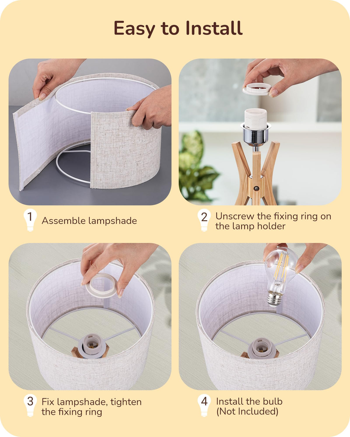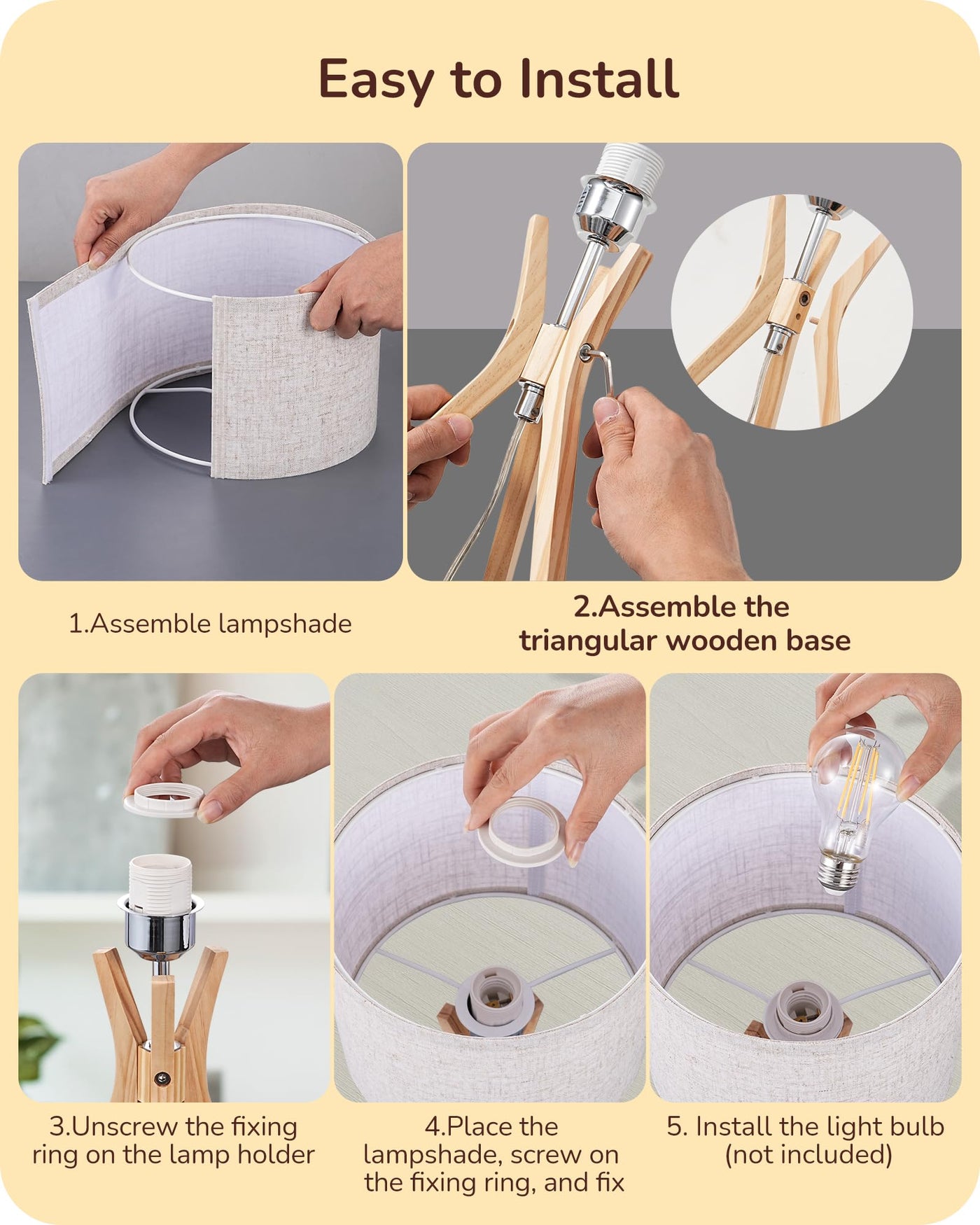 Q: How easy is it to assemble the EDISHINE Tripod Table Lamp?A: Assembly is straightforward; simply attach the three lamp legs using screws, secure the shade, and screw in your chosen bulb. A hex wrench is included for your convenience.