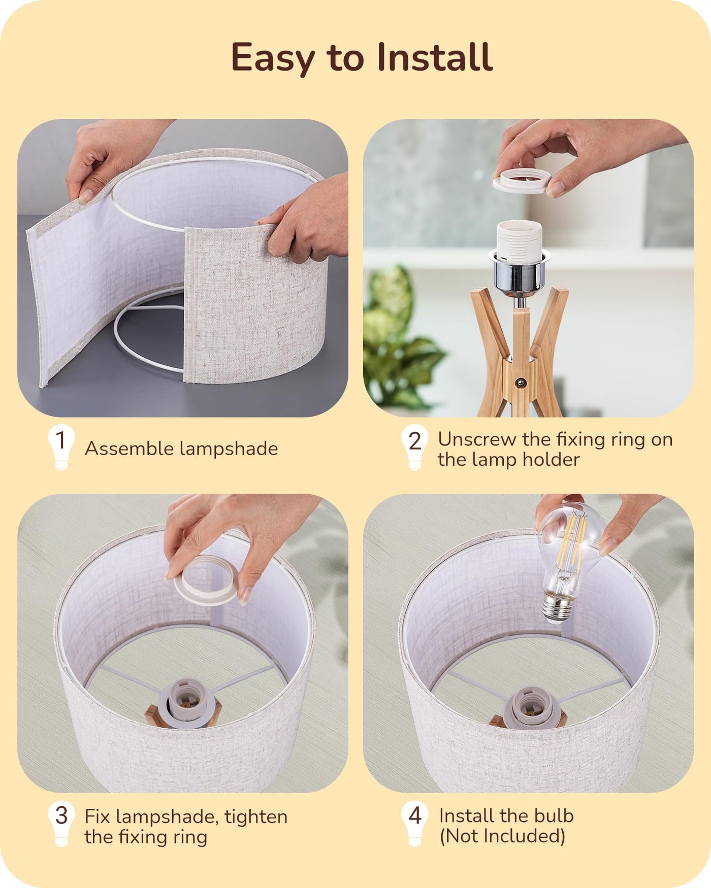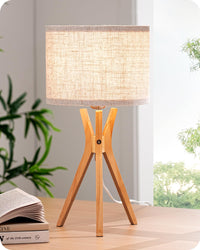 EDISHINE 17.5" Wooden Tripod Table Lamp with Linen Lampshade & E26 Base