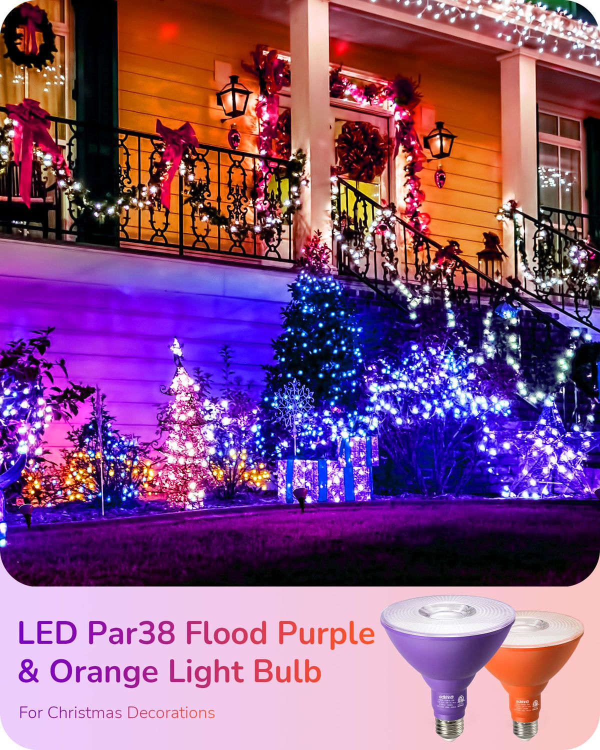 Transform your space with the EDISHINE 2 Pack Outdoor Flood Light Bulbs LED. Designed to replace dull white lights, these vibrant bulbs offer a captivating array of colors to enhance any indoor or outdoor setting. Whether for lively parties, festive holidays, or memorable occasions, these LED Par38 Flood Colored Light Bulbs create an enchanting atmosphere that will impress your guests and elevate your environment.