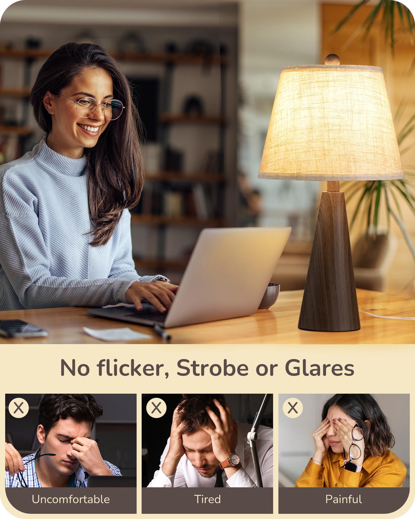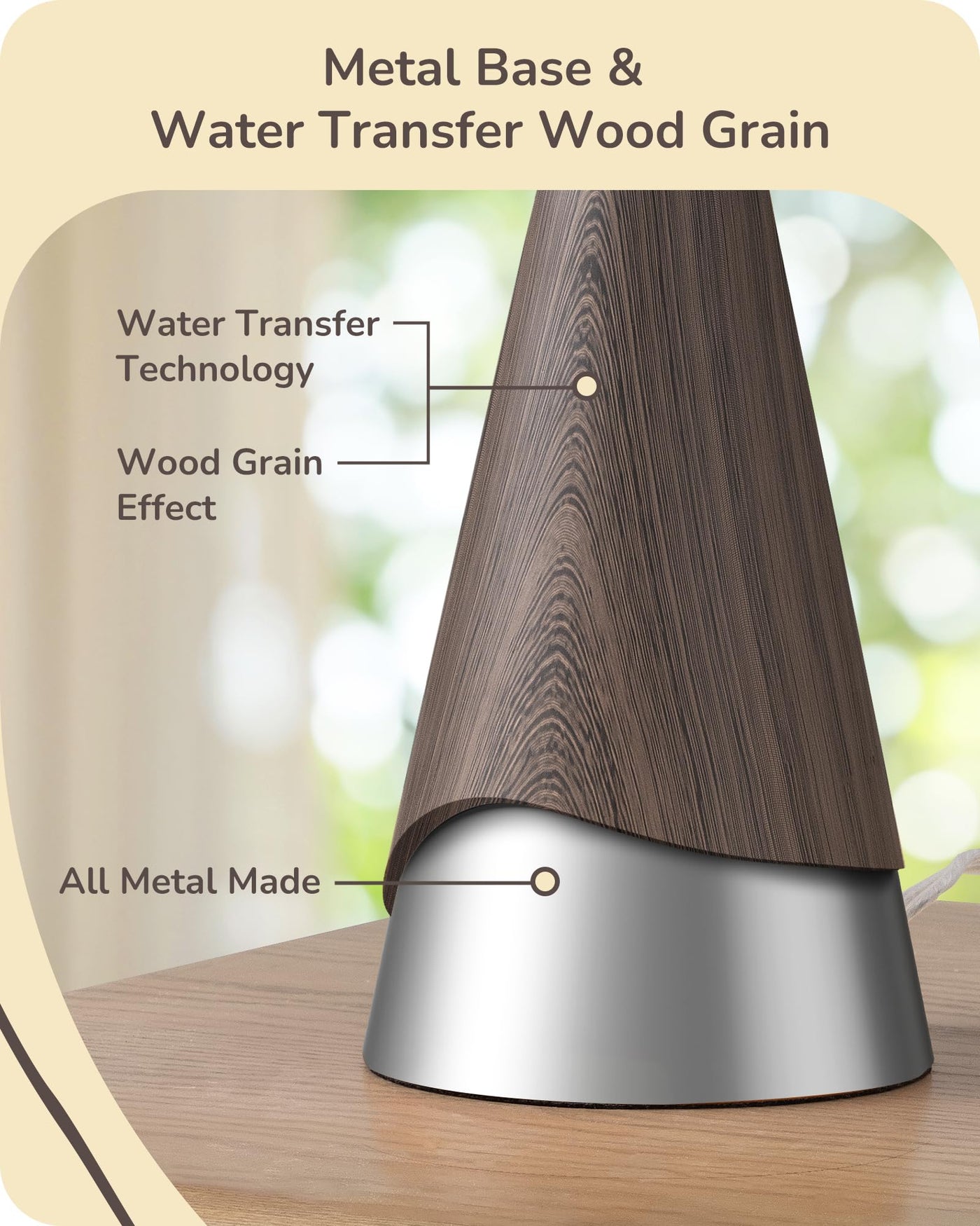 EDISHINE 21.85 Farmhouse Table Lamp, Rustic Bedside Lamp, Water Transfer Walnut Wood Grain Metal Base, Beige Linen Shade, Minima
