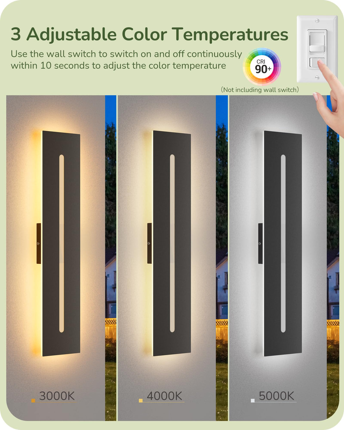 EDISHINE 23.6 Long Modern Outdoor Wall Lights, 2 Pack Rectangular Wall Mount Lighting Fixture, Iron & Acrylic, 3CCT, IP65 Waterp