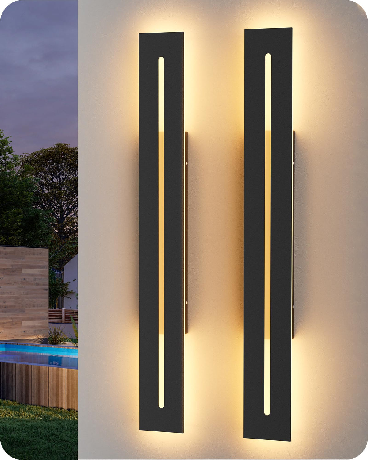 EDISHINE 39.3 Modern Outdoor Wall Sconce, 2 Pack LED Long Wall Lights, Iron & Acrylic, 3CCT, IP65 Waterproof, Linear Dimmable Ex