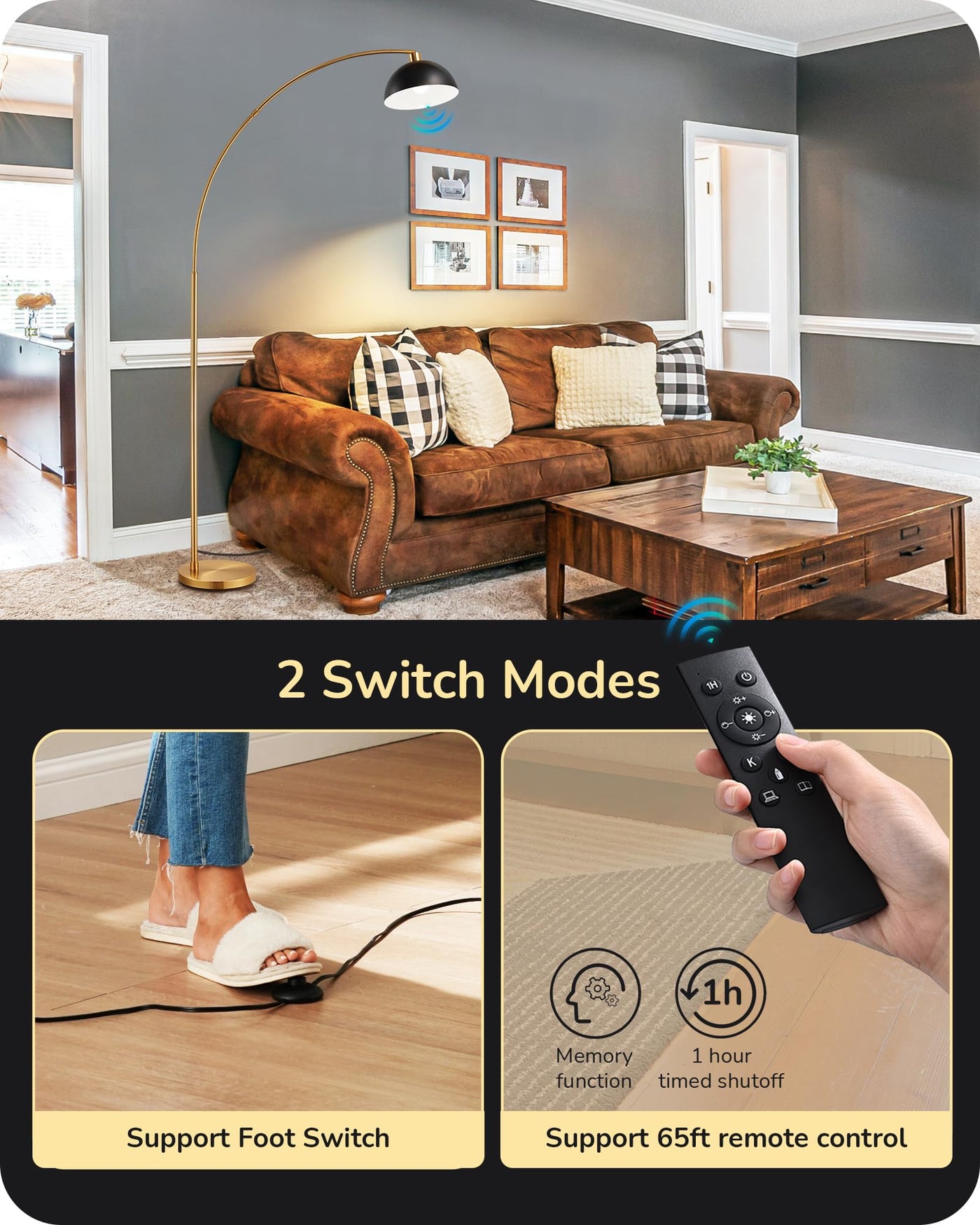 Q: Does this floor lamp come with a remote control?A: Yes, this floor lamp includes a multifunctional remote control that allows you to adjust brightness, set timers, and use multiple control modes from up to 65 feet away.