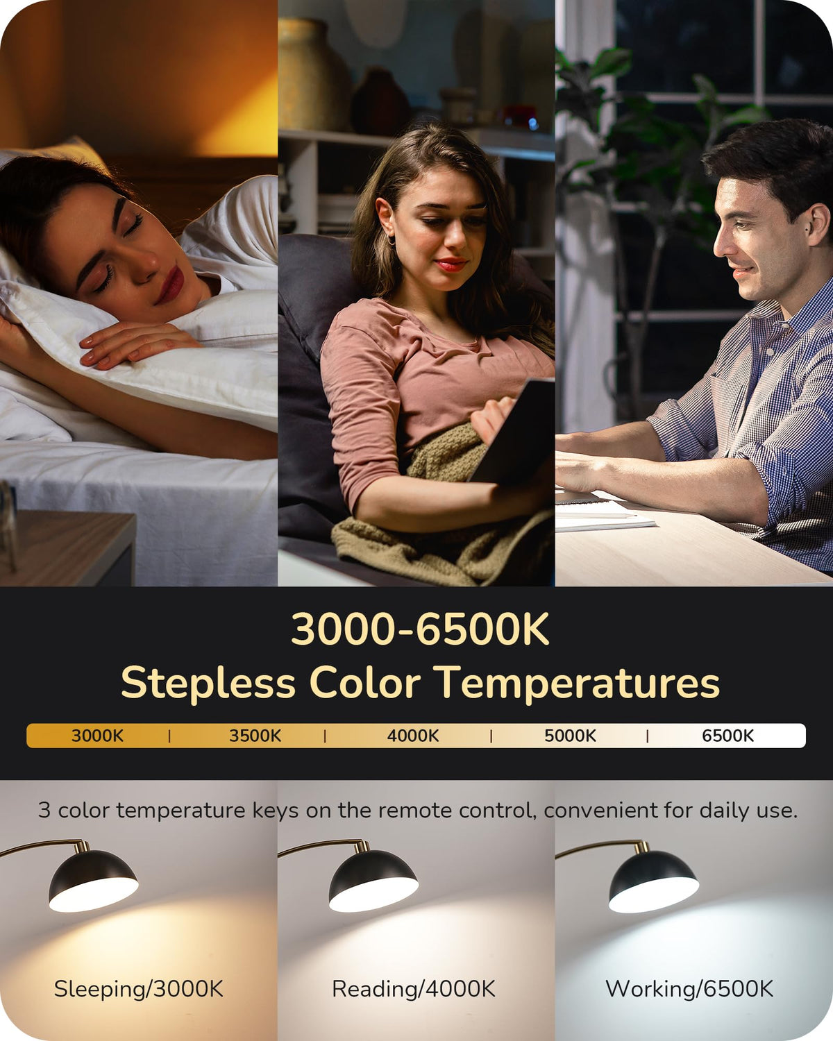 Q: What kind of bulb is included with this lamp?A: The lamp comes with an energy-efficient bulb that is compatible with the floor lamp's features, providing adjustable brightness and color temperature settings.