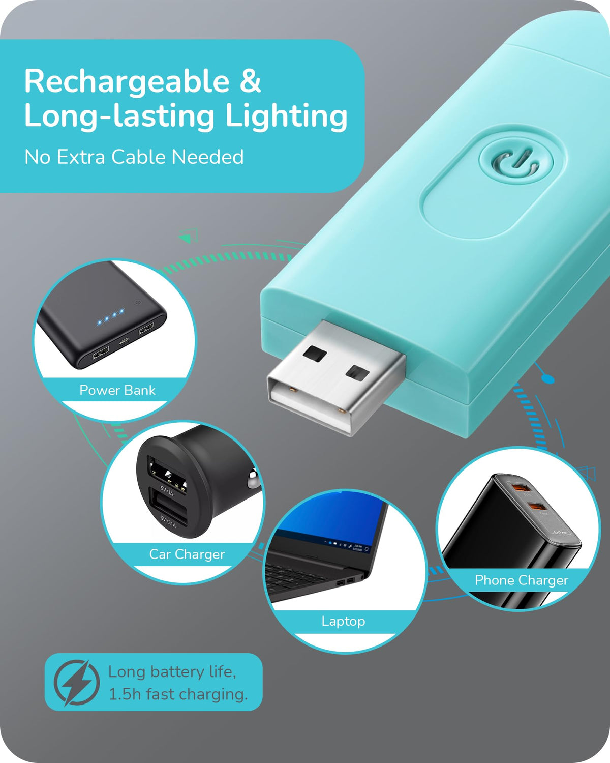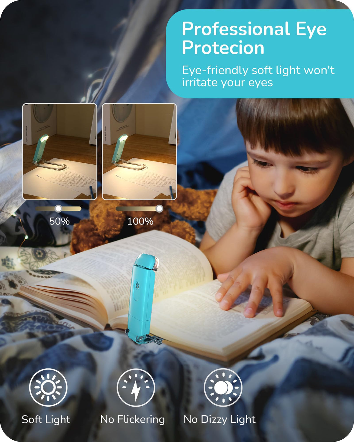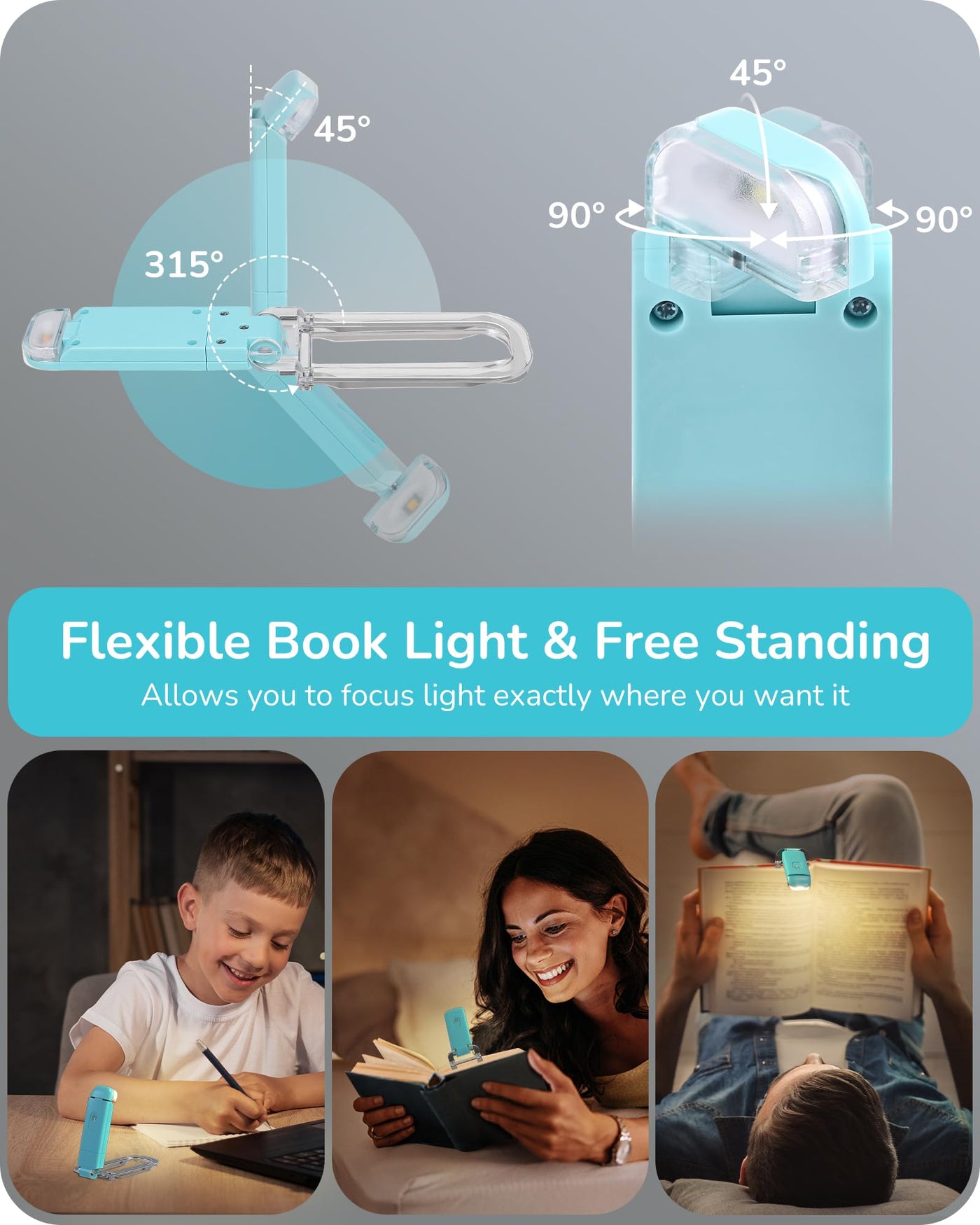 Novel Design This book light was designed with transparent holder and metal clip, elegant color and durable ABS material. 2 brightness settings with a switch button and multi-angle adjustment for optimum lighting angle; eye-protection and will not bother those around you; lightweight and portable for reading in bed or trips on the train or airplane; great gift for book lovers! Energy Efficient Built in 200mAh lithium rechargeable battery and universal USB interface, make charging more convenient. Simply plug the book light into the computer, power bank, wall outlet, adapter, car charger or other USB devices and no additional cable needed. It will last up to 8 hours on the high brightness setting, also 0.2W low consumption to save energy. Versatile You can just turn the book light off and fold it as bookmark and go to sleep without having to get out of bed to turn off the light, ideal for kids, bookworms. And it is perfect when the power outages, very handy to pick it up from your bedside and super practical. Free standing to be used as a desk lamp, and flexible angle adjustment lets it be used for many other uses. Specifications: - Lumens: 16LM - Color Temperature: 3000K - Wattage: 0.2W - Charging Time: 1.5 Hours - Working Time: Up to 8 Hours - Lifespan: 30000 Hours Packing List: - 1 x USB Book Light - 1 x User Manual Note: The power indicator shows blue when charging; it will turn off automatically when charging is finished. The LED lens can only be rotated 90 to the Anticlockwise. Forcibly rotating more than 90 will cause the light to be damaged and never illuminated.
