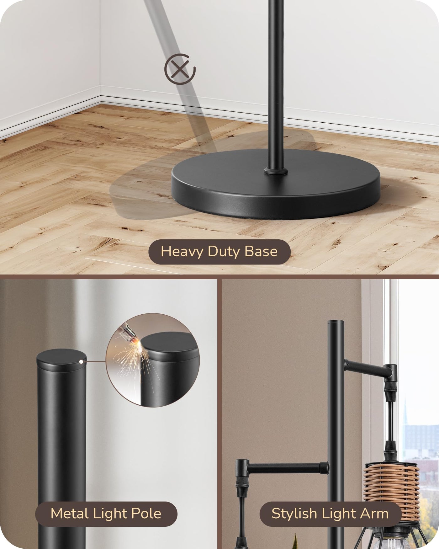 Edishine Dimmable Farmhouse Floor Lamp For Living Room, Industrial Black Standing Lamp With 3 Led Edison Bulbs, Corner Rustic Ra