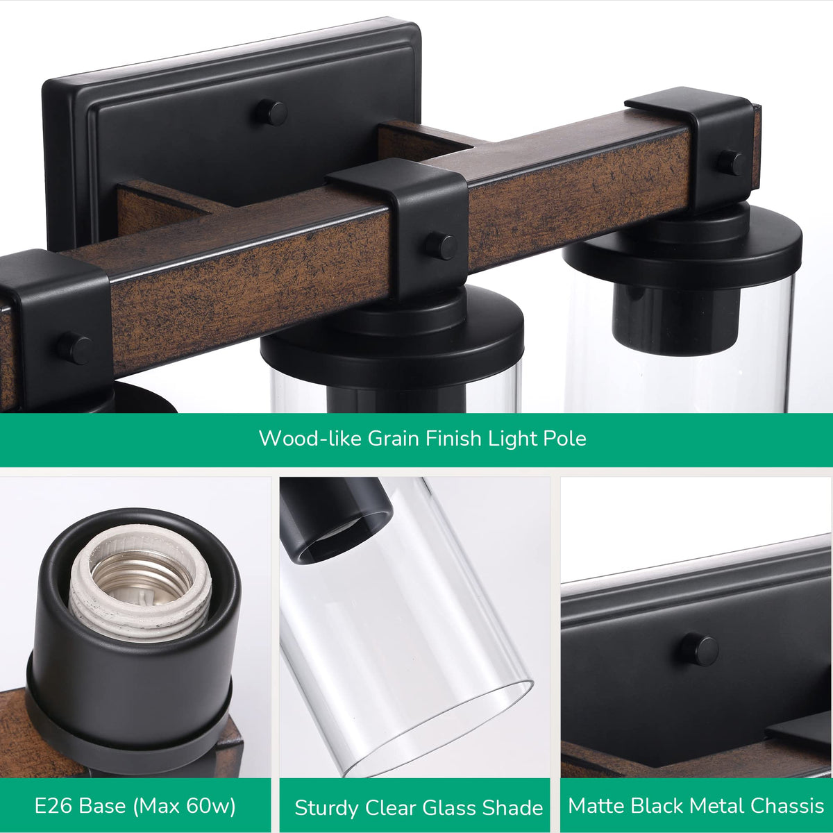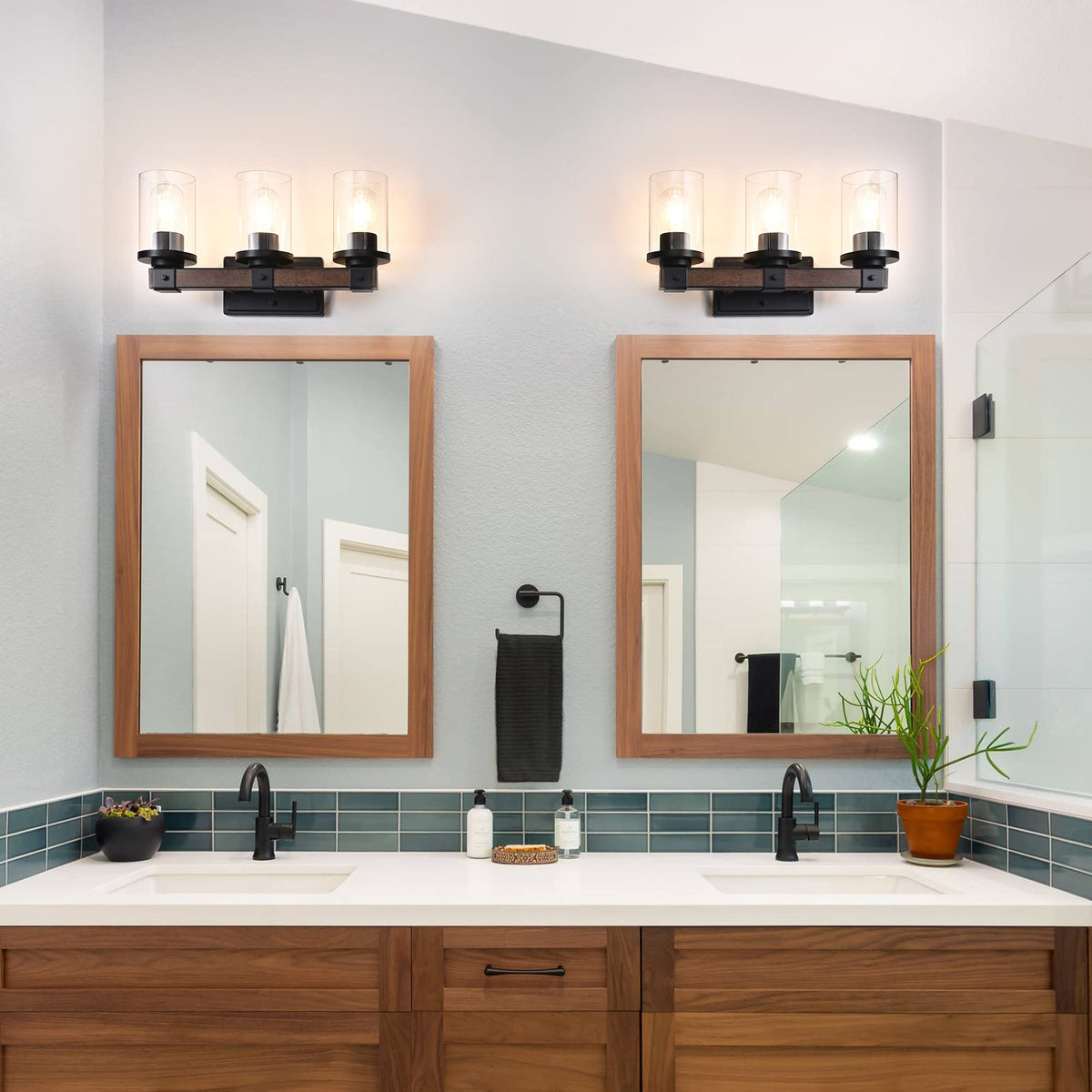Edishine Farmhouse Vanity Lights For Bathroom & Living Room, 3-Light Over Mirror, Wall Sconce With Clear Glass Shades (E26 Base)