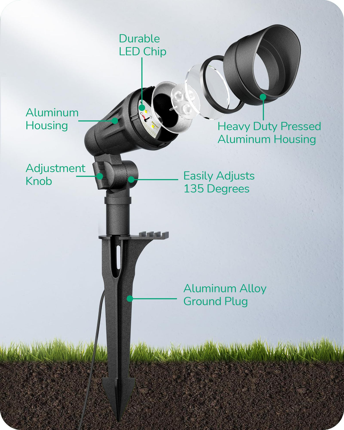 The EDISHINE LED Landscape Lights provide efficient 3.2W, 12V AC/DC spotlighting with a bright 240LM output and a 35? beam angle. Featuring a CRI of 80 and a warm 3000K white light, these lights enhance your outdoor spaces with a soft, inviting glow. Built with durable aluminum housing, they?e perfect for illuminating alleyways, fences, and yards. This 8-pack set is an ideal solution for low-voltage outdoor lighting needs. Specifications: - Power: 3.2W - Voltage: 12V AC/DC - Lumen Output: 240LM - Color Temperature: 3000K Warm White - Color Rendering Index (CRI): 80 - Beam Angle: 35? - Material: Aluminum Housing - Certification: ETL Certified Packing List: - LED Landscape Light x8 - Instruction Manual x1