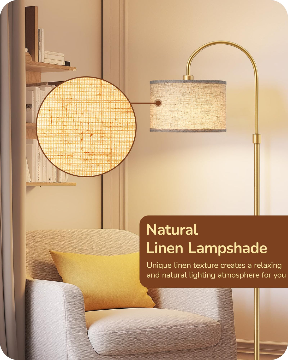 Edishine Modern Arc Floor Lamp With Remote, Dimmable Gold Floor Lamp, 3000K-6500K Color Temperatures, Tall Pole Reading Floor La