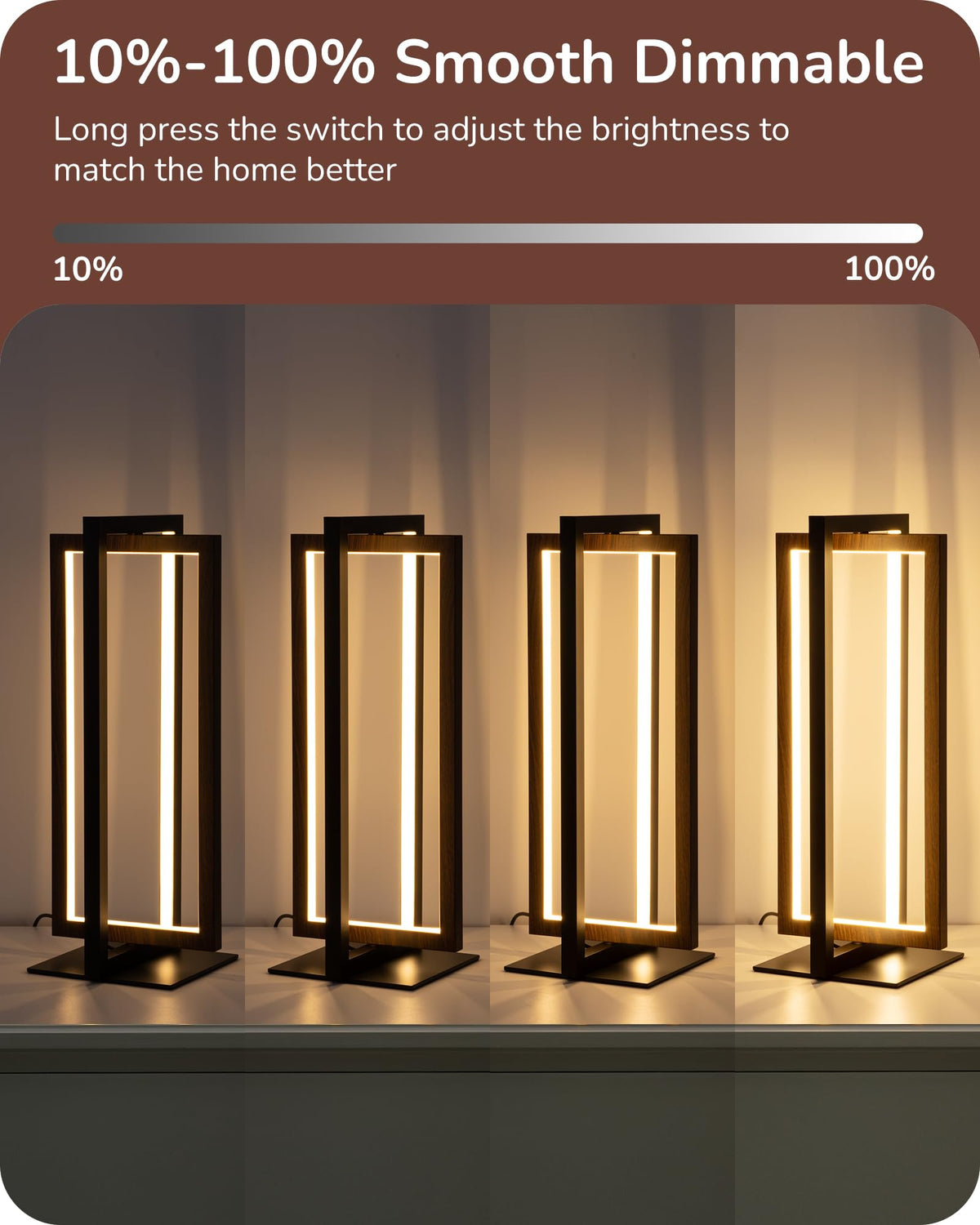 Edishine Modern Led Table Lamp - Dimmable, 3 Color Temp, Adjustable - Walnut Wood Finish