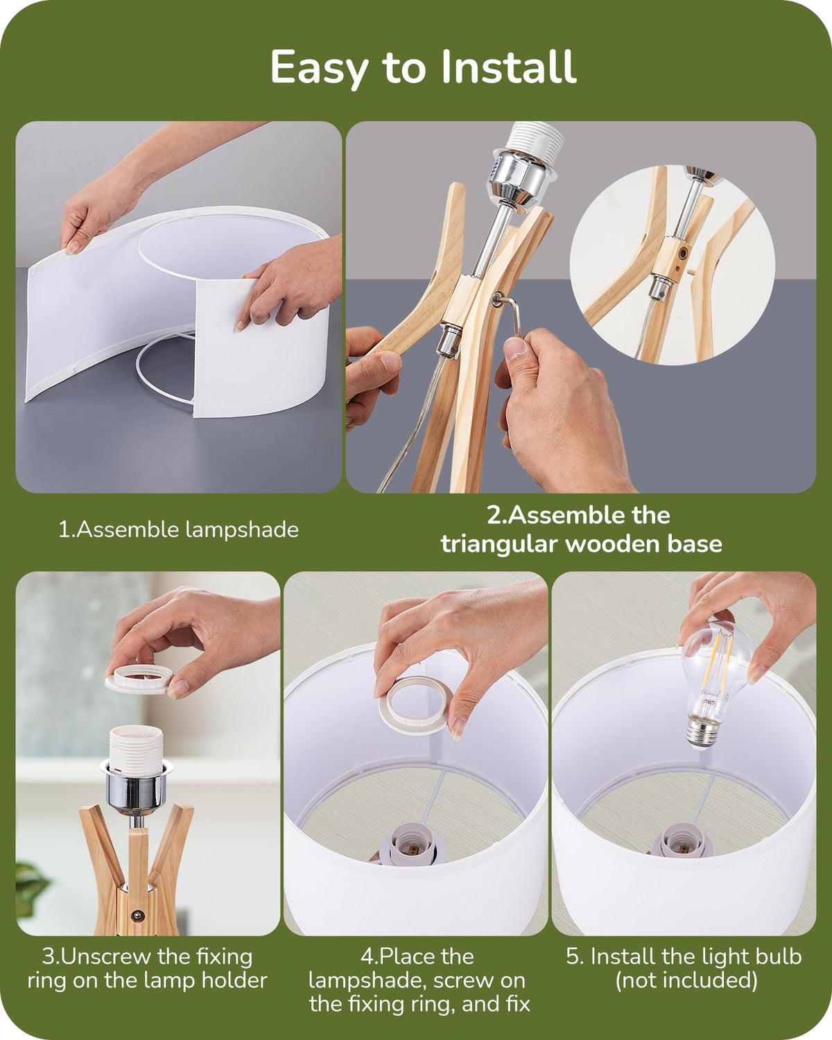 Stable & Space-saving: The tall and slender wooden tripod design makes the lamp more sturdy and less prone to tipping over. Its 9.05" diameter ensures it doesn't take up excessive space, ideal for side tables and children's rooms.