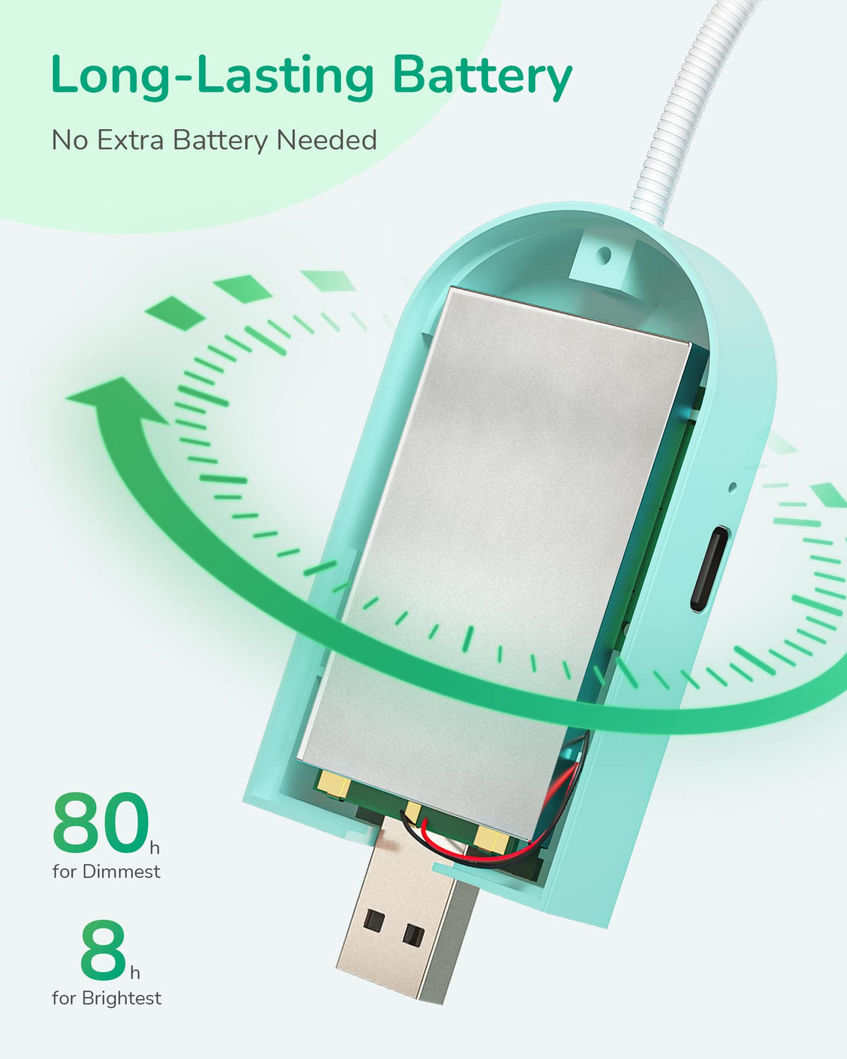 Novel Design Multi brightness settings with a switch button and CCT button, long goose neck which can provide multi-angle adjustment for optimum lighting angle; eye-protection and will not bother those around you; lightweight and portable for reading in bed or trips on the train or airplane; great gift for book lovers! Energy Efficient Built in 700mAh lithium rechargeable battery and universal USB interface, make charging more convenient. Simply plug the book light into the computer, power bank, wall outlet, adapter, car charger or other USB devices and no additional cable needed. It will last up to 8 hours on the high brightness setting, also 0.2W low consumption to save energy. Versatile You can just turn the book light off and fold it as bookmark and go to sleep without having to get out of bed to turn off the light, ideal for kids, bookworms. And it is perfect when the power outages, very handy to pick it up from your bedside and super practical. Free standing to be used as a desk lamp, and flexible angle adjustment lets it be used for many other uses. Specifications: - Lumens: 30LM - Color Temperature: 1800K, 4000K, 6000K - Wattage: 0.2W - Charging Time: 1.5 Hours - Working Time: 8 80 Hours - Lifespan: 30000 Hours Packing List: - 1 x USB Book Light - 1 x User Manual Note: The power indicator shows blue when charging; it will turn off automatically when charging is finished. The clip can only be can be used on items up to 2cm thick.