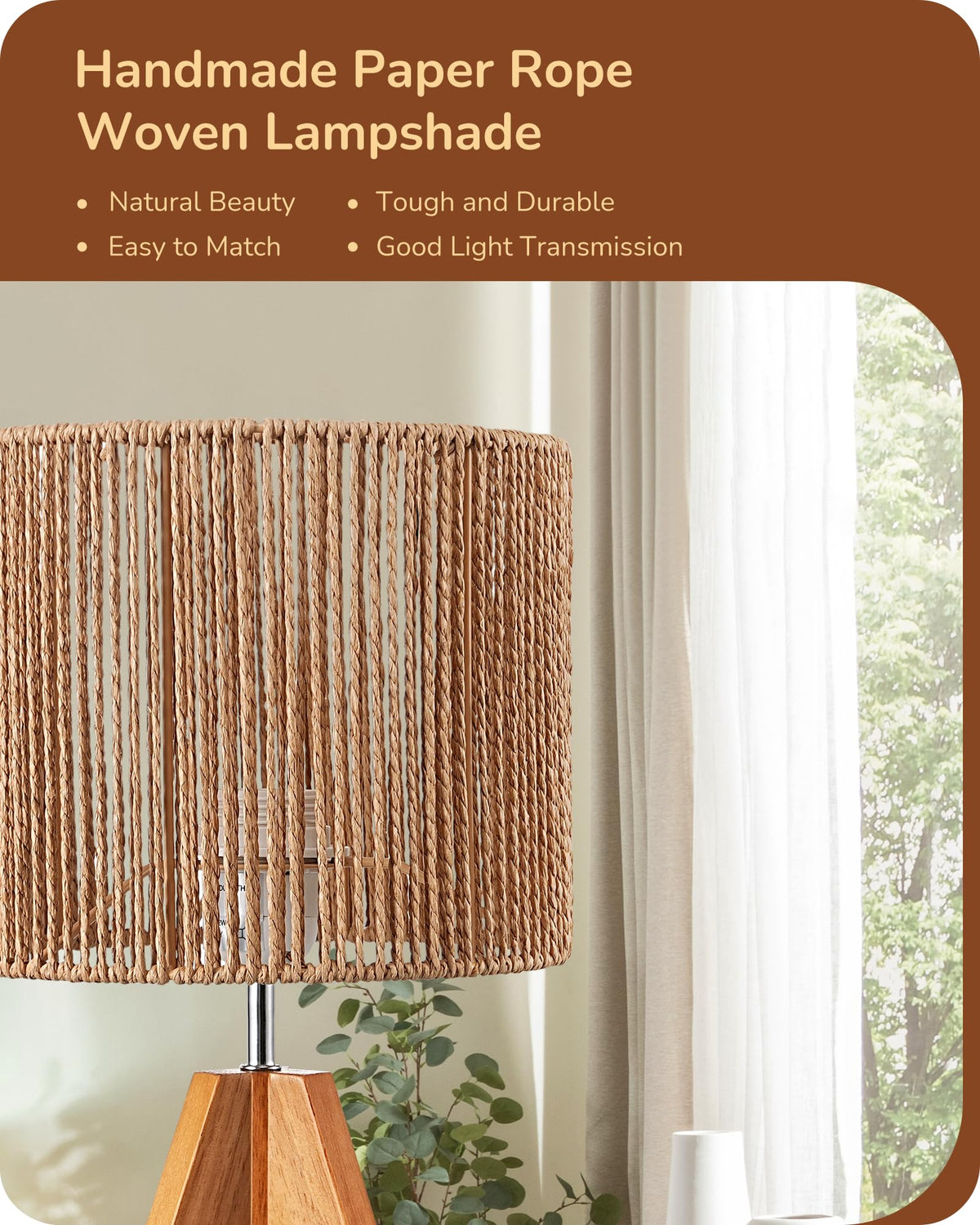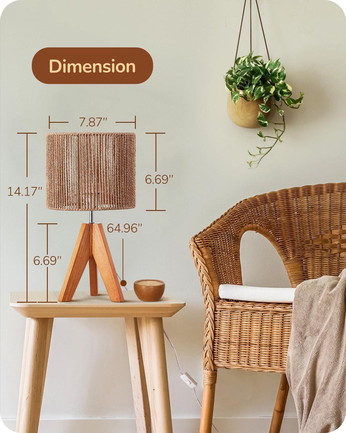 Q: What style does the EDISHINE Small Rattan Table Lamp complement?A: The lamp features a fresh, natural minimalist design, combining solid wood and woven elements. Its natural beauty and unique light and shadow effects make it an excellent addition to various interior styles, particularly in boho and contemporary home décor.