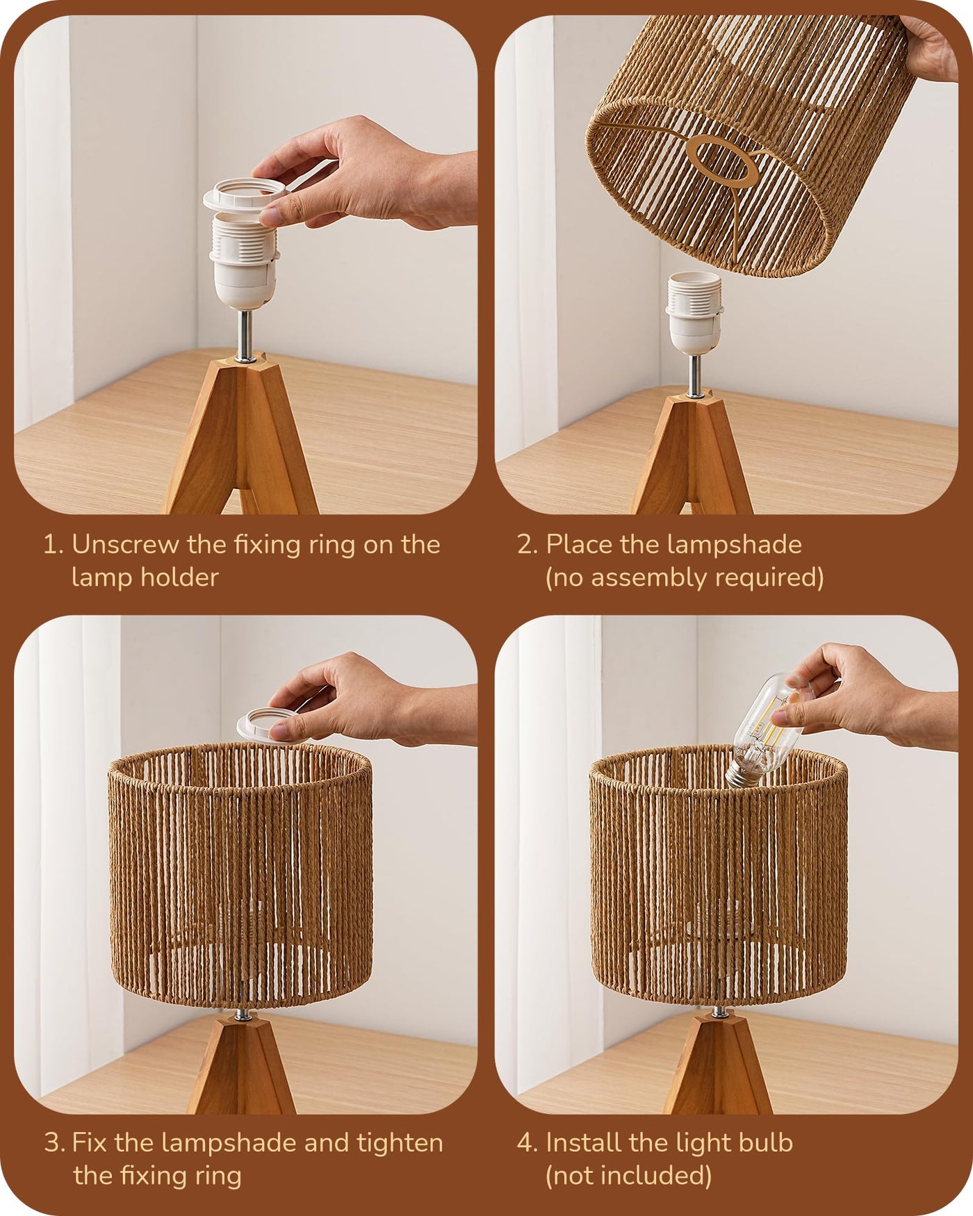 Q: Is the lamp easy to assemble?A: Yes, the EDISHINE Small Rattan Table Lamp features a one-piece lampshade design, which means no assembly is required. It is easy and quick to set up, making it convenient for immediate use.