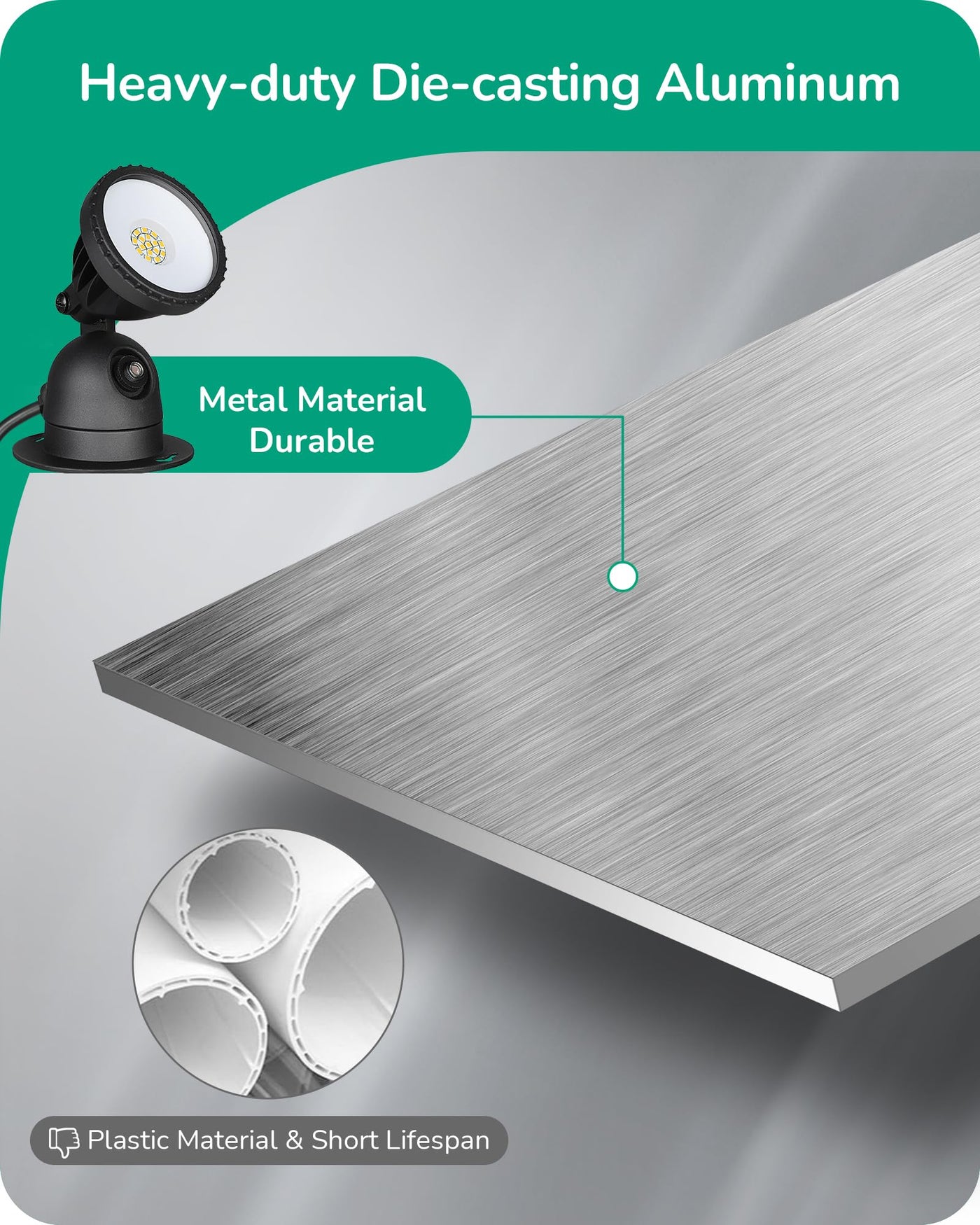 EDISHINE Spot Lights Outdoor, Dusk to Dawn, 120V 12W 4000K Landscape Lighting, 180 Rotatable, IP65 Waterproof & 3FT Cord, LED Ou
