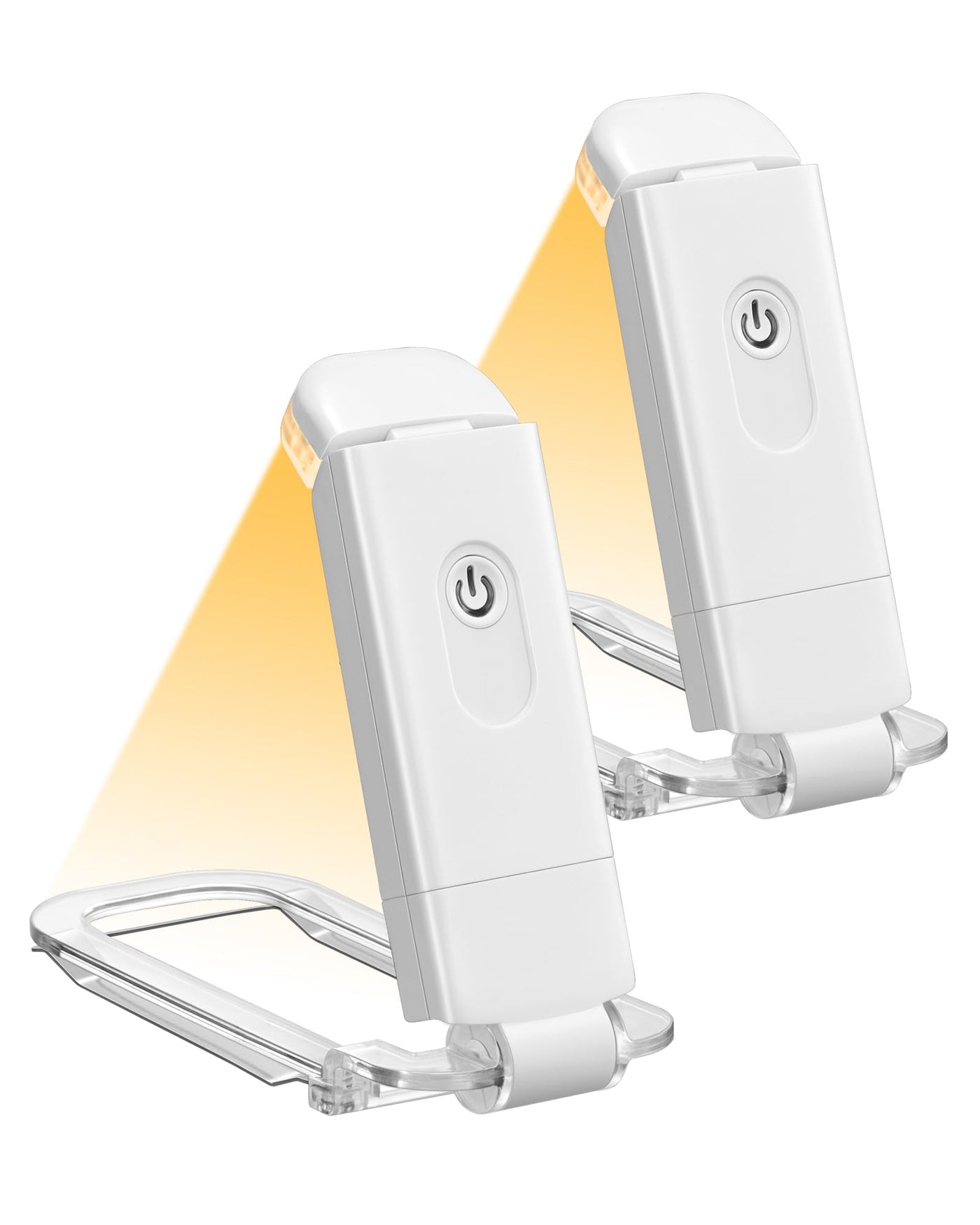 Novel Design This book light was designed with transparent holder and metal clip, elegant color and durable ABS material. 2 brightness settings with a switch button and multi-angle adjustment for optimum lighting angle; eye-protection and will not bother those around you; lightweight and portable for reading in bed or trips on the train or airplane; great gift for book lovers! Energy Efficient Built in 200mAh lithium rechargeable battery and universal USB interface, make charging more convenient. Simply plug the book light into the computer, power bank, wall outlet, adapter, car charger or other USB devices and no additional cable needed. It will last up to 8 hours on the high brightness setting, also 0.2W low consumption to save energy. Versatile You can just turn the book light off and fold it as bookmark and go to sleep without having to get out of bed to turn off the light, ideal for kids, bookworms. And it is perfect when the power outages, very handy to pick it up from your bedside and super practical. Free standing to be used as a desk lamp, and flexible angle adjustment lets it be used for many other uses. Specifications: - Lumens: 16LM - Color Temperature: 3000K - Wattage: 0.2W - Charging Time: 1.5 Hours - Working Time: Up to 8 Hours - Lifespan: 30000 Hours Packing List: - 1 x USB Book Light - 1 x User Manual Note: The power indicator shows blue when charging; it will turn off automatically when charging is finished. The LED lens can only be rotated 90 to the Anticlockwise. Forcibly rotating more than 90 will cause the light to be damaged and never illuminated.