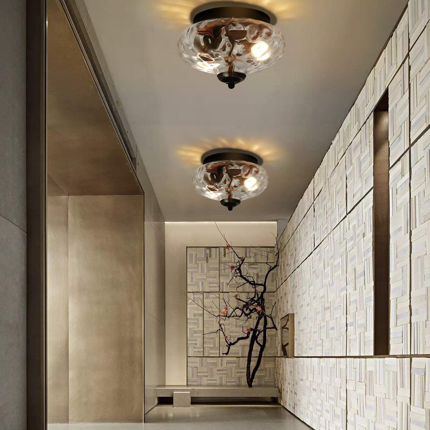 EDISLIVE Modern 2-Light Hammered Glass Flush Mount Light Pendant Ceiling Light Fixture 10.2" Indoor Ceiling Light For Hallyway Foyer Bedroom