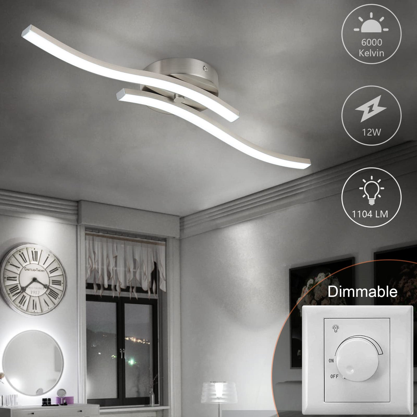 Edislive Modern Dimmable Led Ceiling Light Curved 2 Light 22.5 In Minimalist Led Flush Mount Ceiling Light Fixture Lamp For Bedr