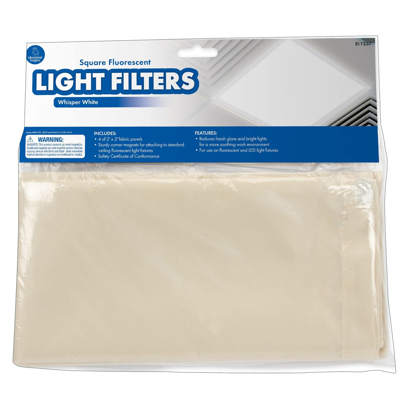 Educational Insights Mini Light Filters Whisper White, 2’ X 2’ 4-Pack, Square Fluorescent Light Covers, Easy Install For Office, Hospitals, Home & Classroom Must Haves