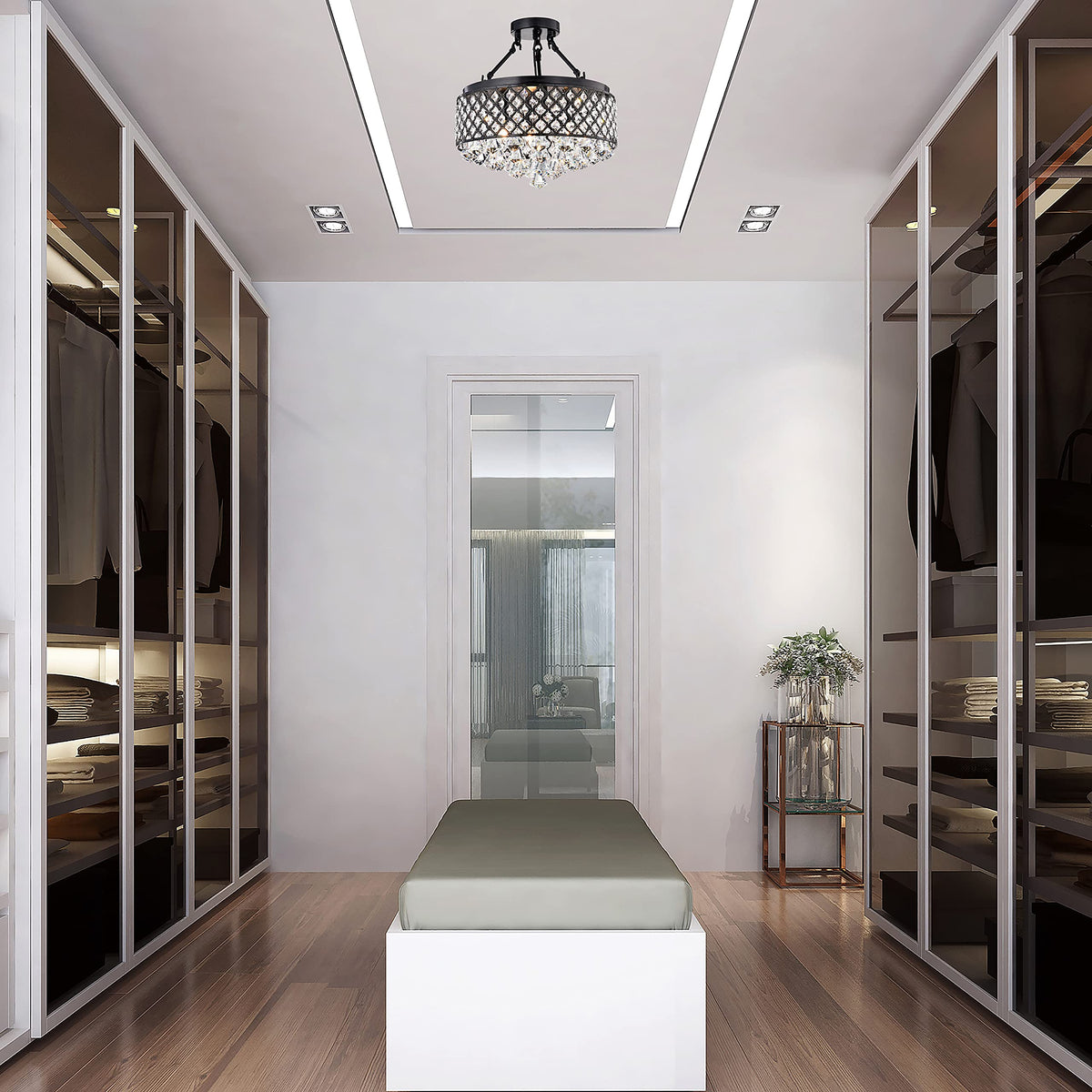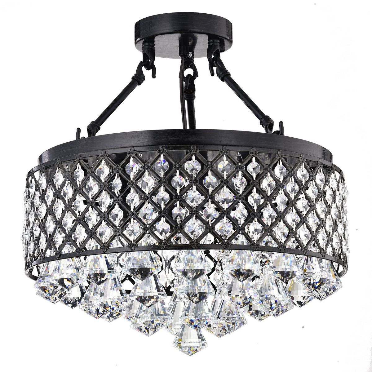 Edvivi Round Semi Flush Mount Crystal Chandelier, 4 Lights, Antique Black Finish, Metal, Semi-Flush, ESG406BL
