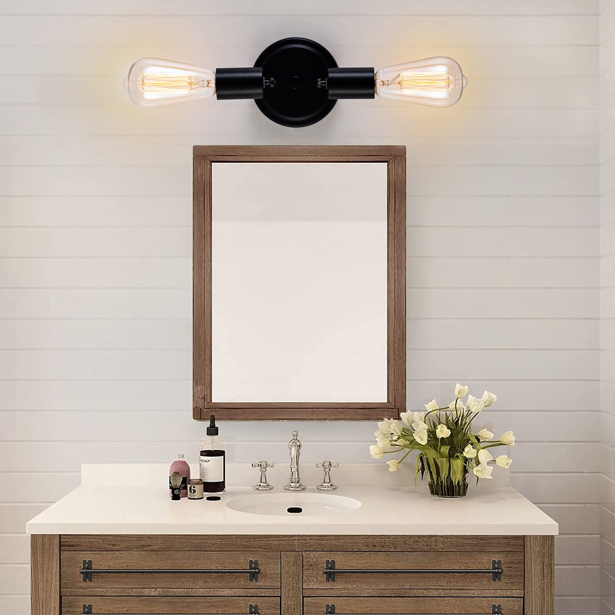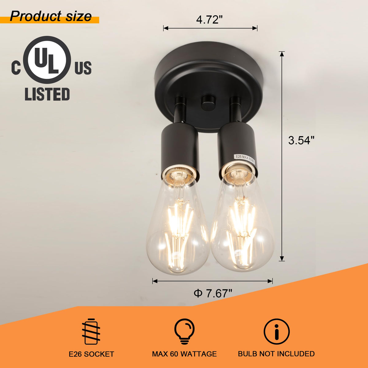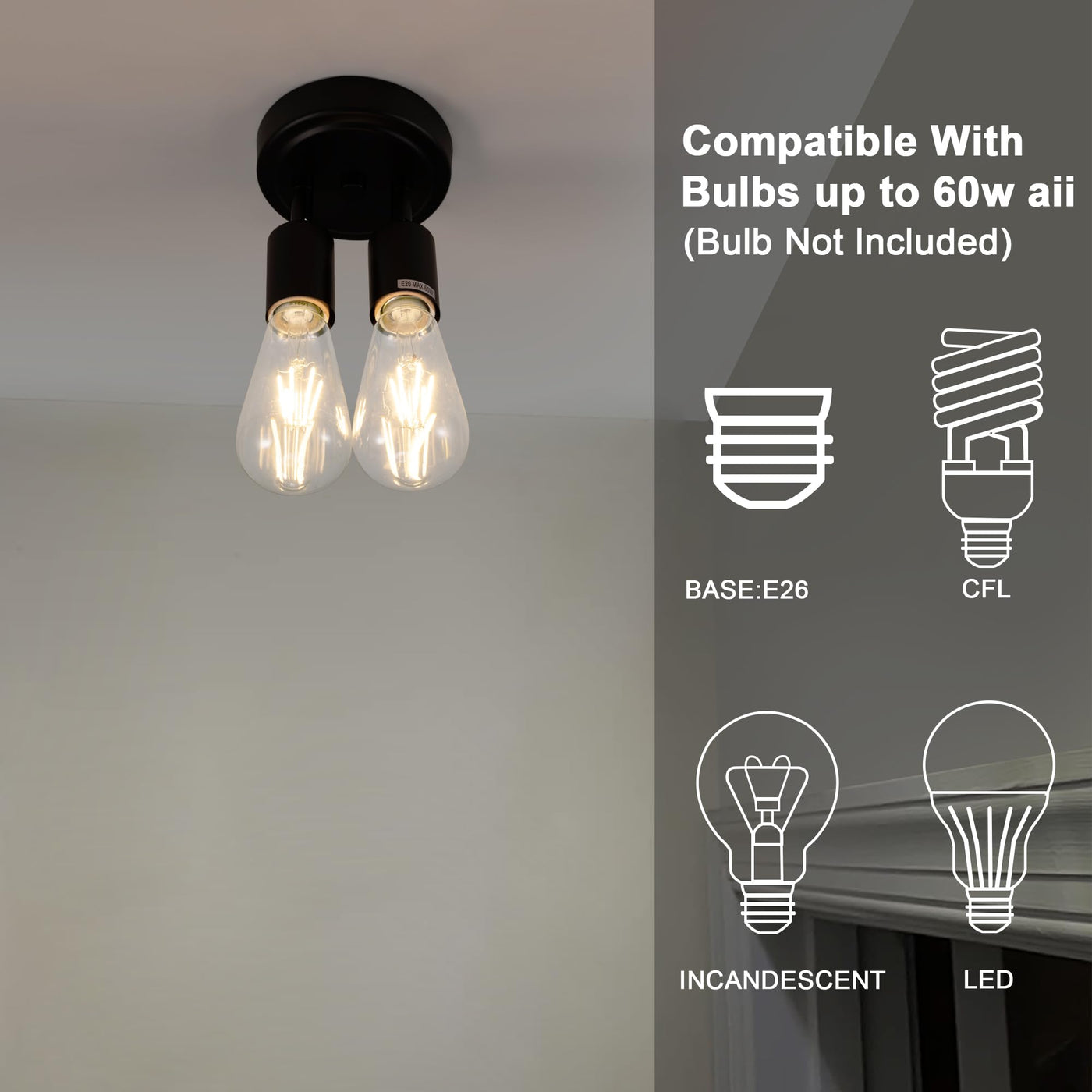 Edzemuwa Semi Flush Mount 2Light Ceiling Light Matte Black With E26 Base Modern Chandelier For Farmhouse Kitchen Dining Room Bed