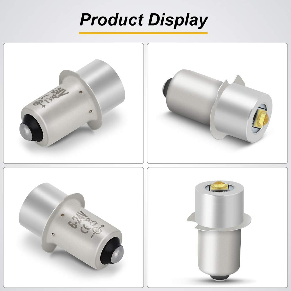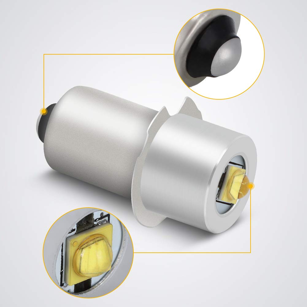 Eecoo 2 Pack Led Flashlight Bulbs 5W 6-24V P13.5S High Power Replacement For