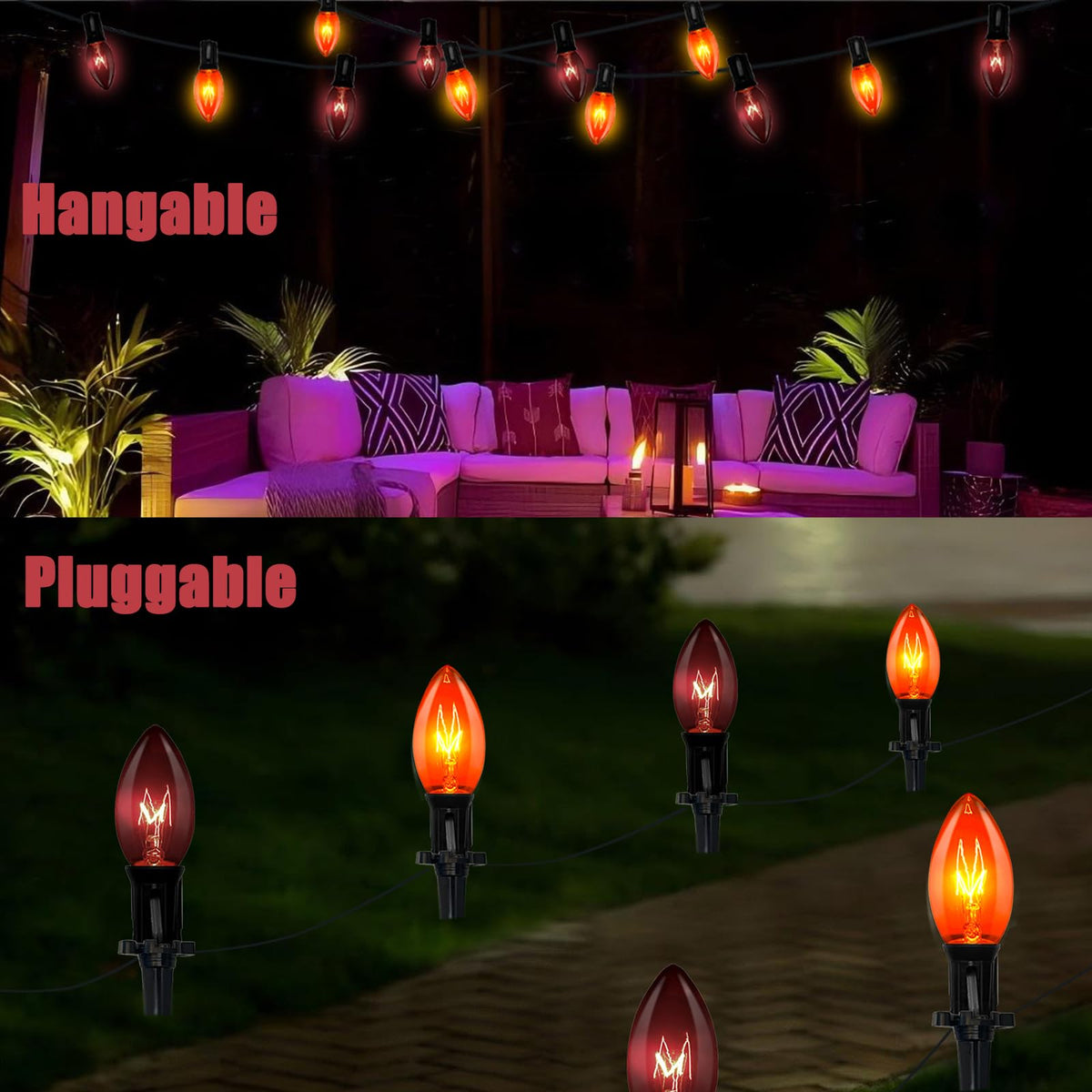 Egcol 19.5Ft Halloween Pathway Lights, 10 Pack C9 Orange & Black Bulbs, Connectable, Ul Listed, Outdoor Garden Yard Driveway Law