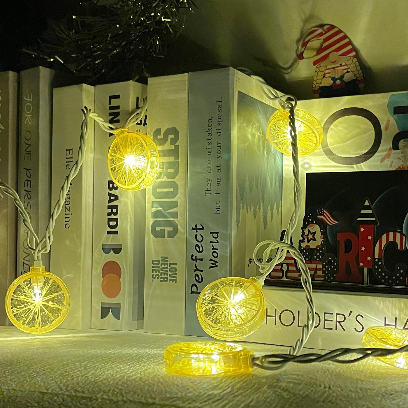 Egcol 8.5Ft Led Lemon String Lights, Plug In Summer Fairy Lights With 10 Lemon Slicer Lights, Novelty Decorative String Lights F