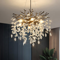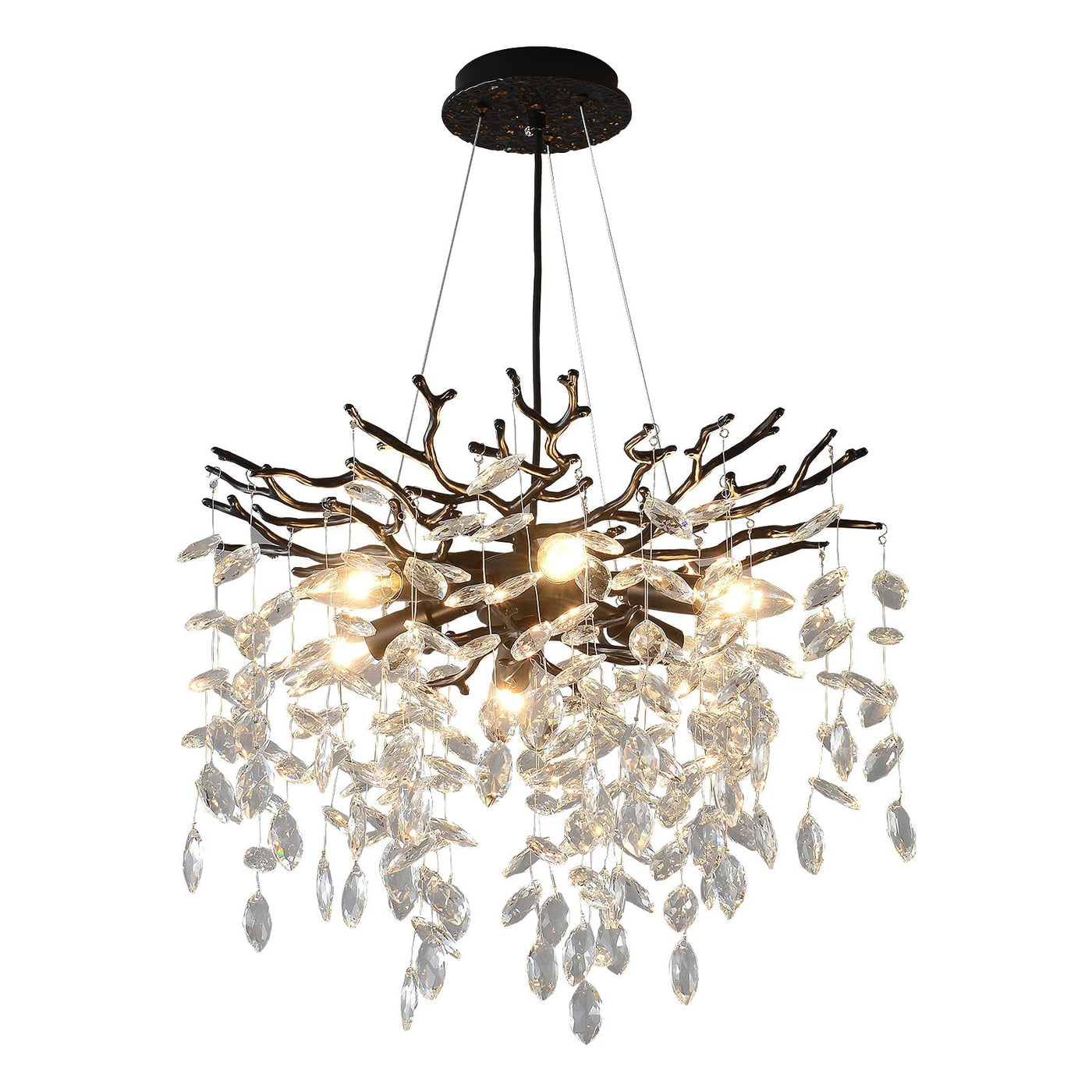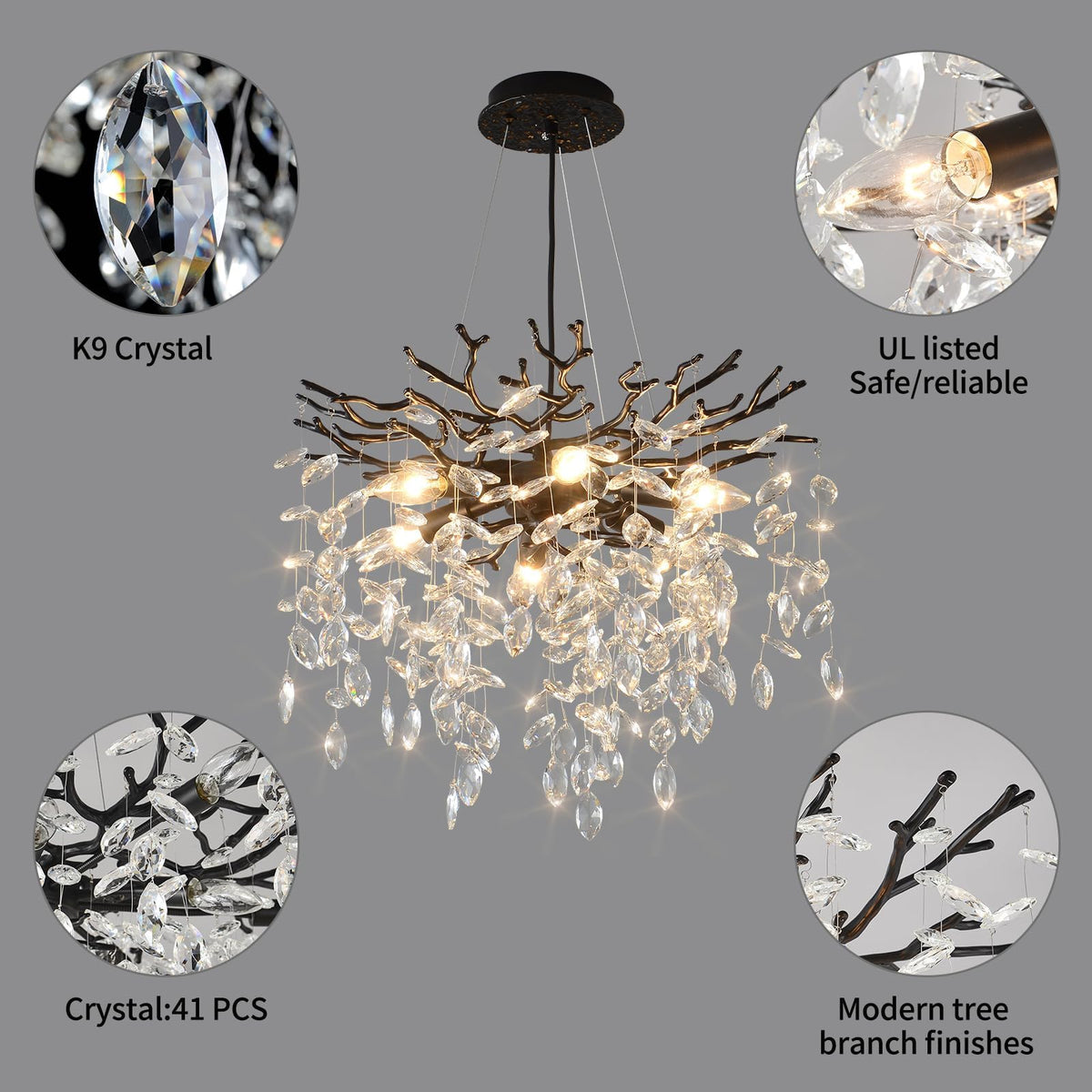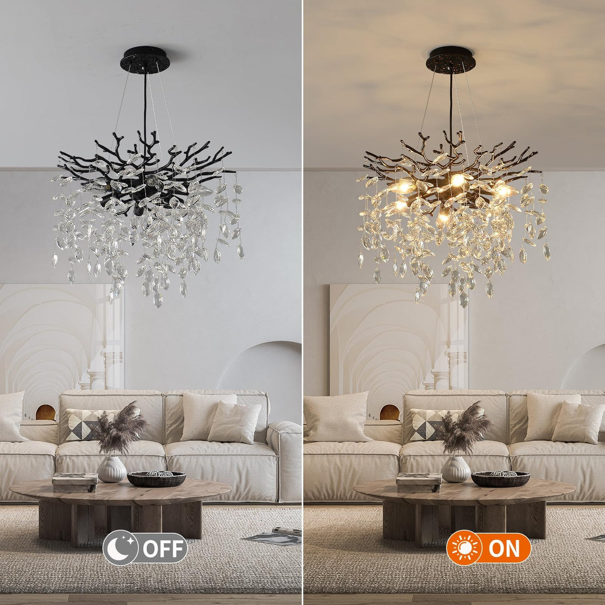Egm Black Tree Branch Crystal Chandelier, 18 Inch Modern Dining Room Crystal Chandelier 6-Light(E12), Hanging Round Chandeliers