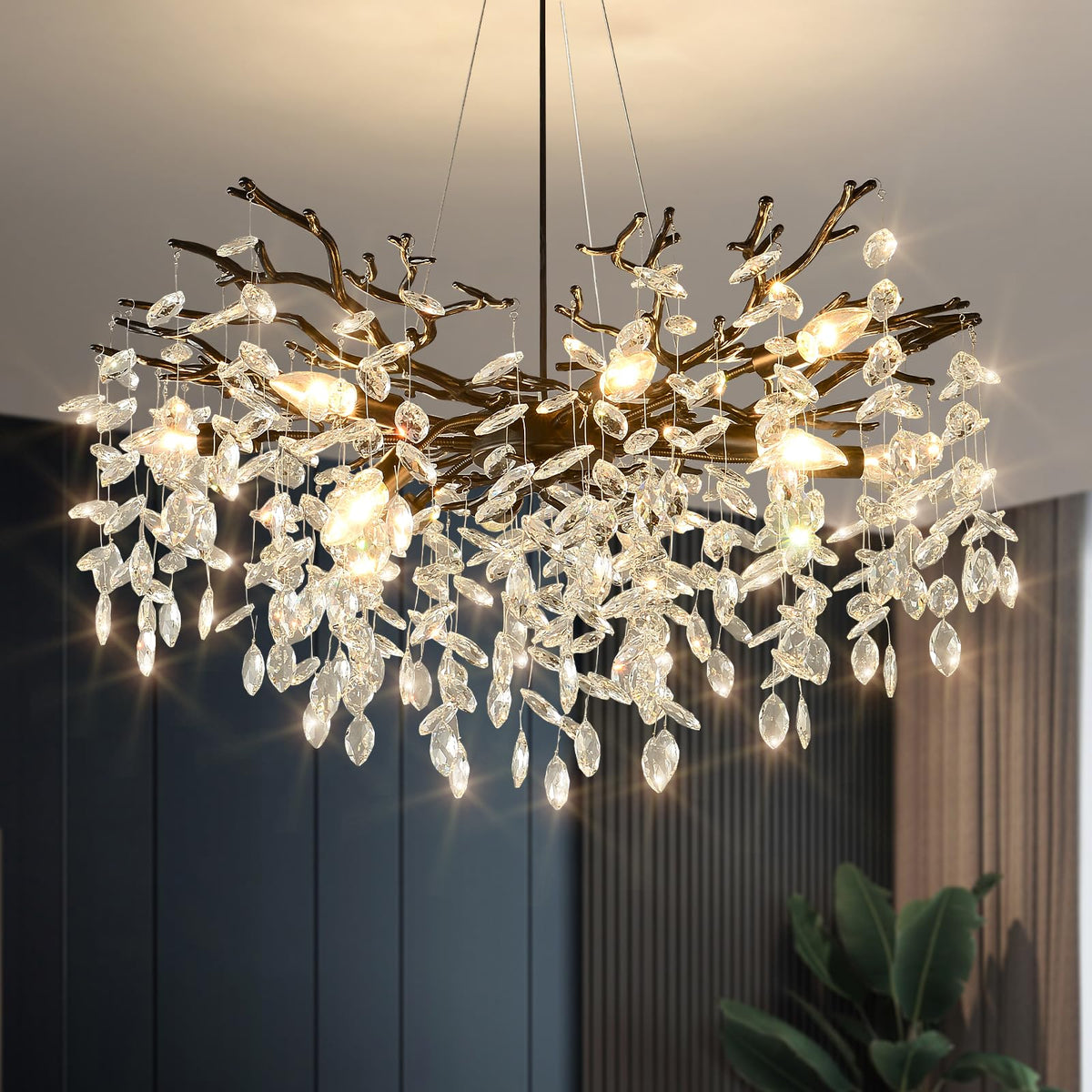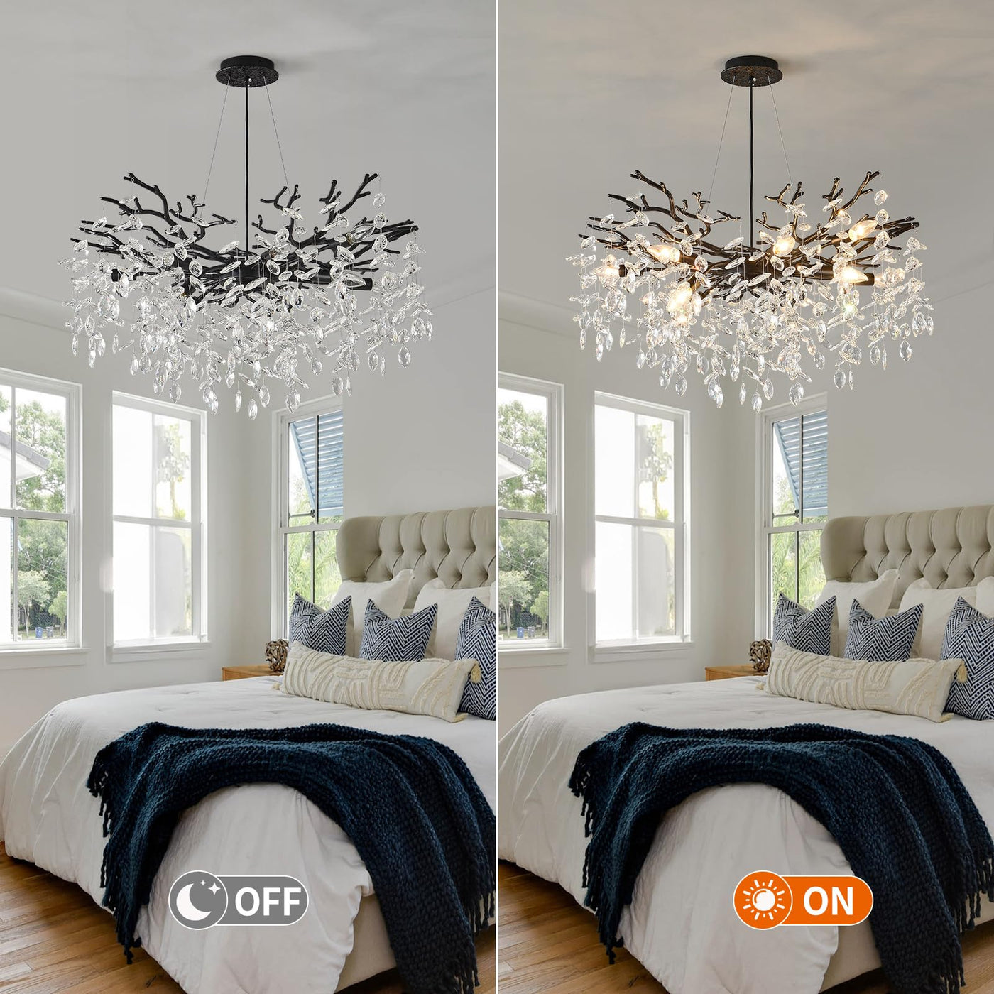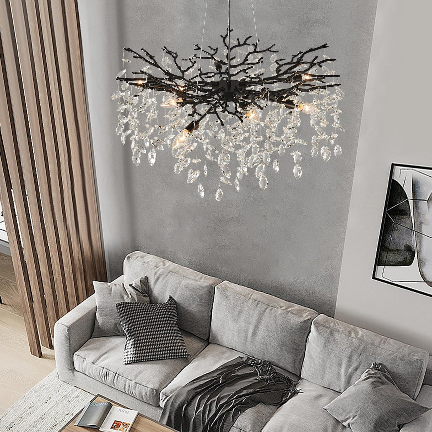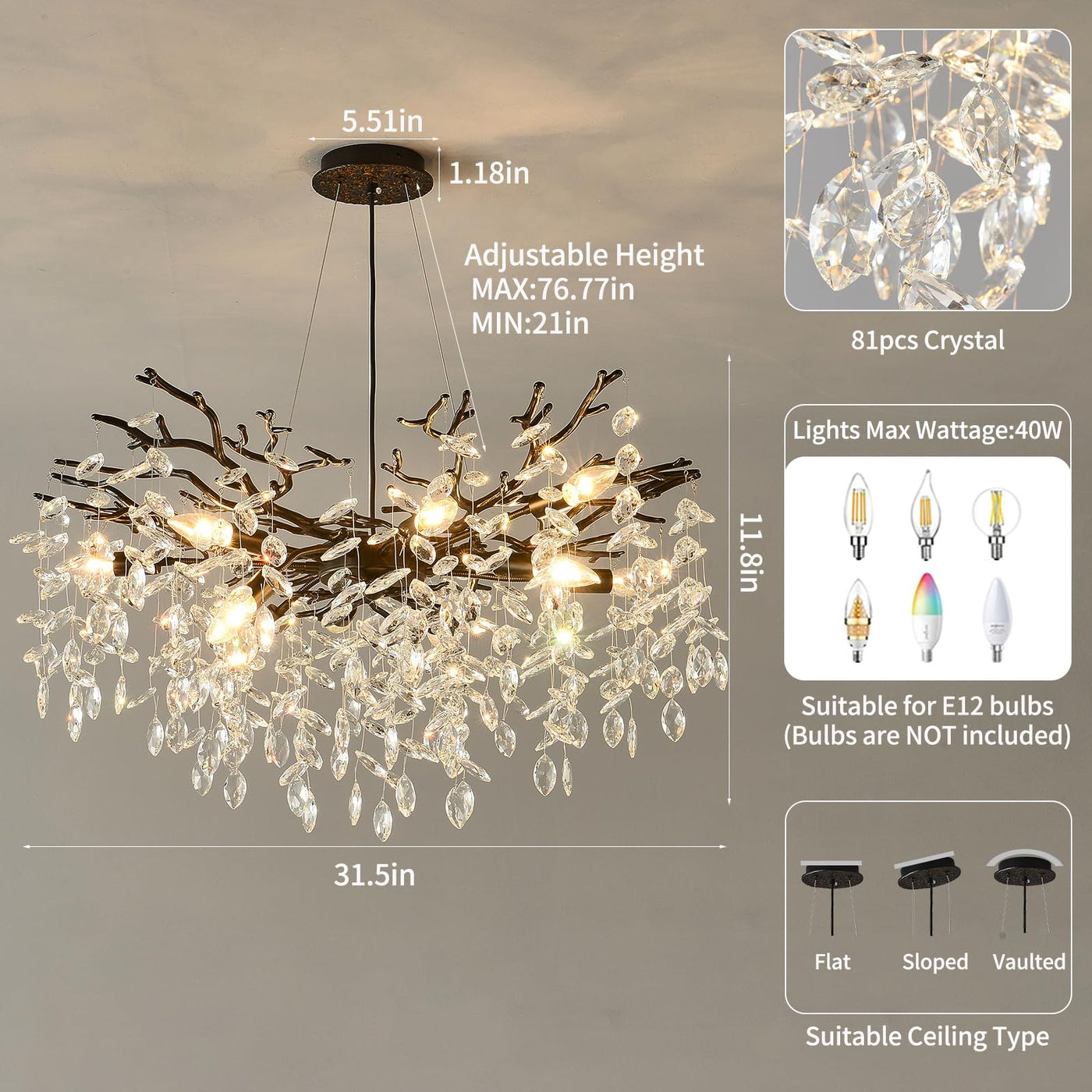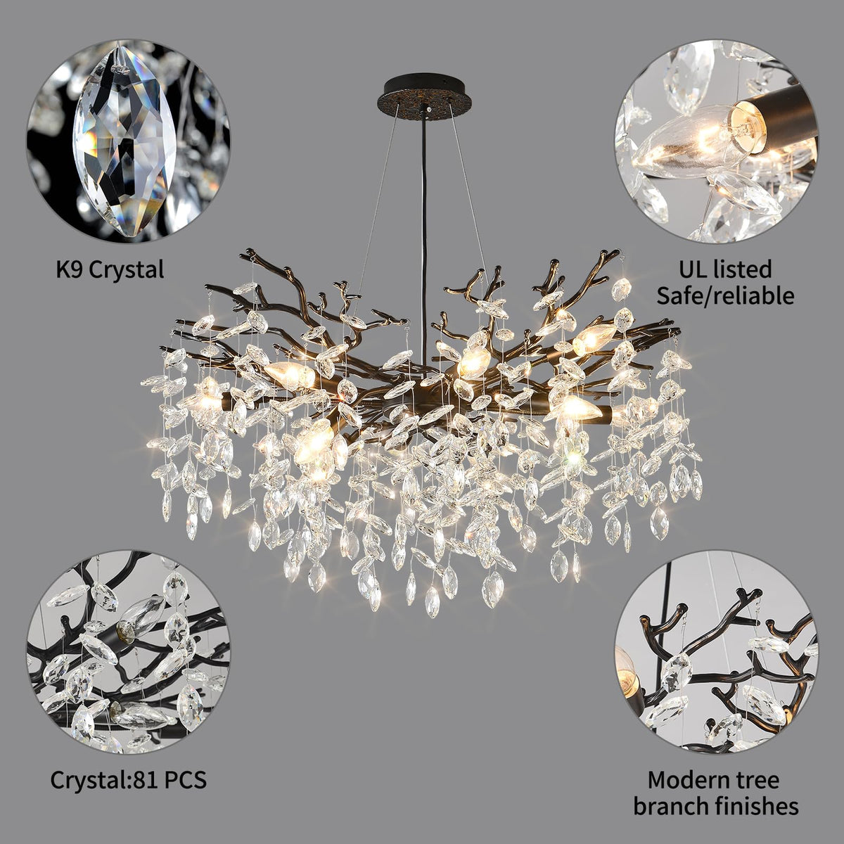 Egm Tree Branch Crystal Chandelier, 32 Inch Living Room Black Crystal Chandelier 10-Light(E12), Hanging Branch Chandeliers For D