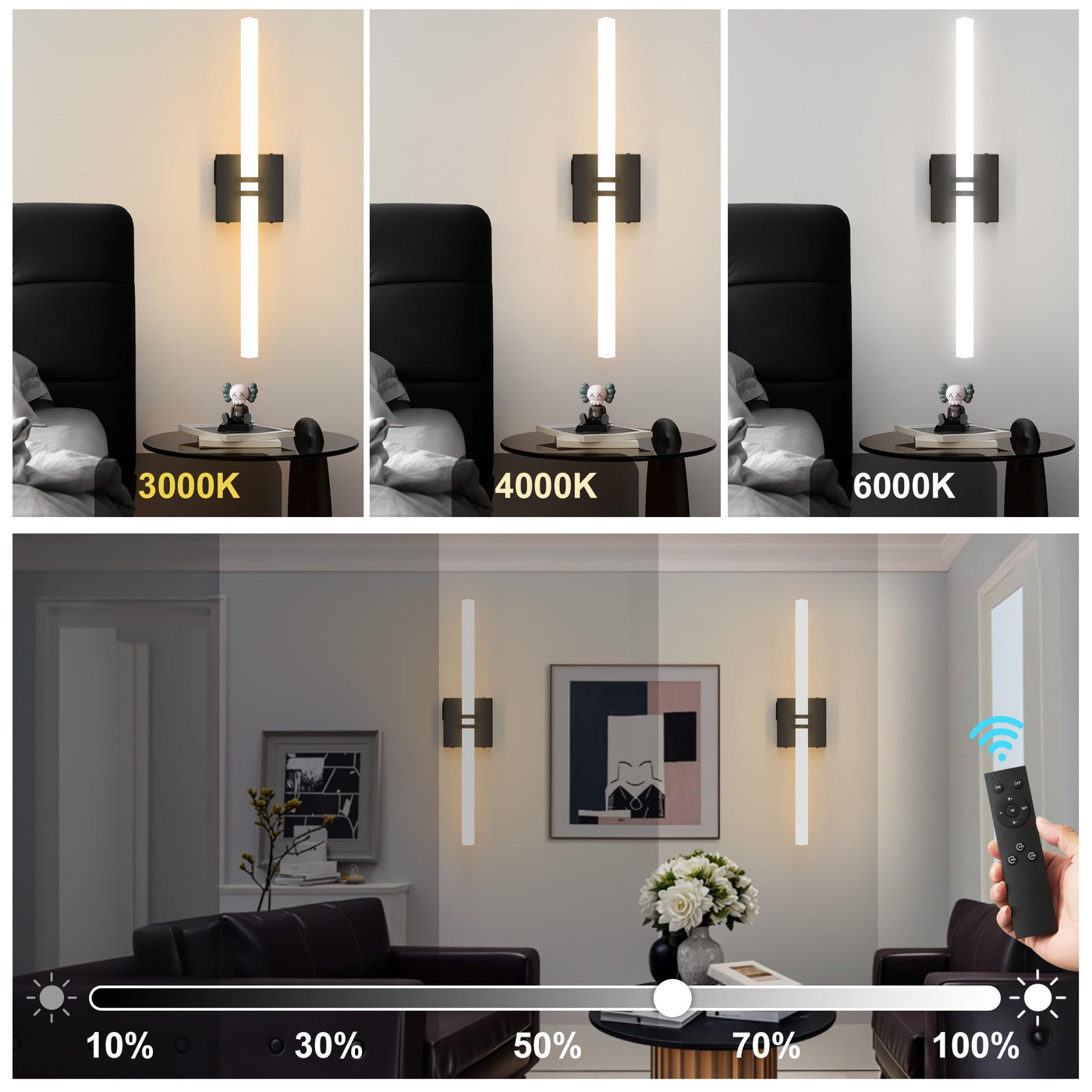 Eicrkodn Battery Operated Wall Sconce, Dimmable Remote Control, 22 Inch, Black, Model 001battery, Acrylic Material
