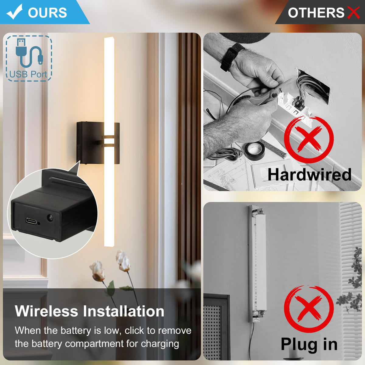 Q: How do I charge the battery for the wall sconce?A: The wall sconce features a removable battery box, which can be easily detached for charging. A USB Type-C charging cable is included with the product.