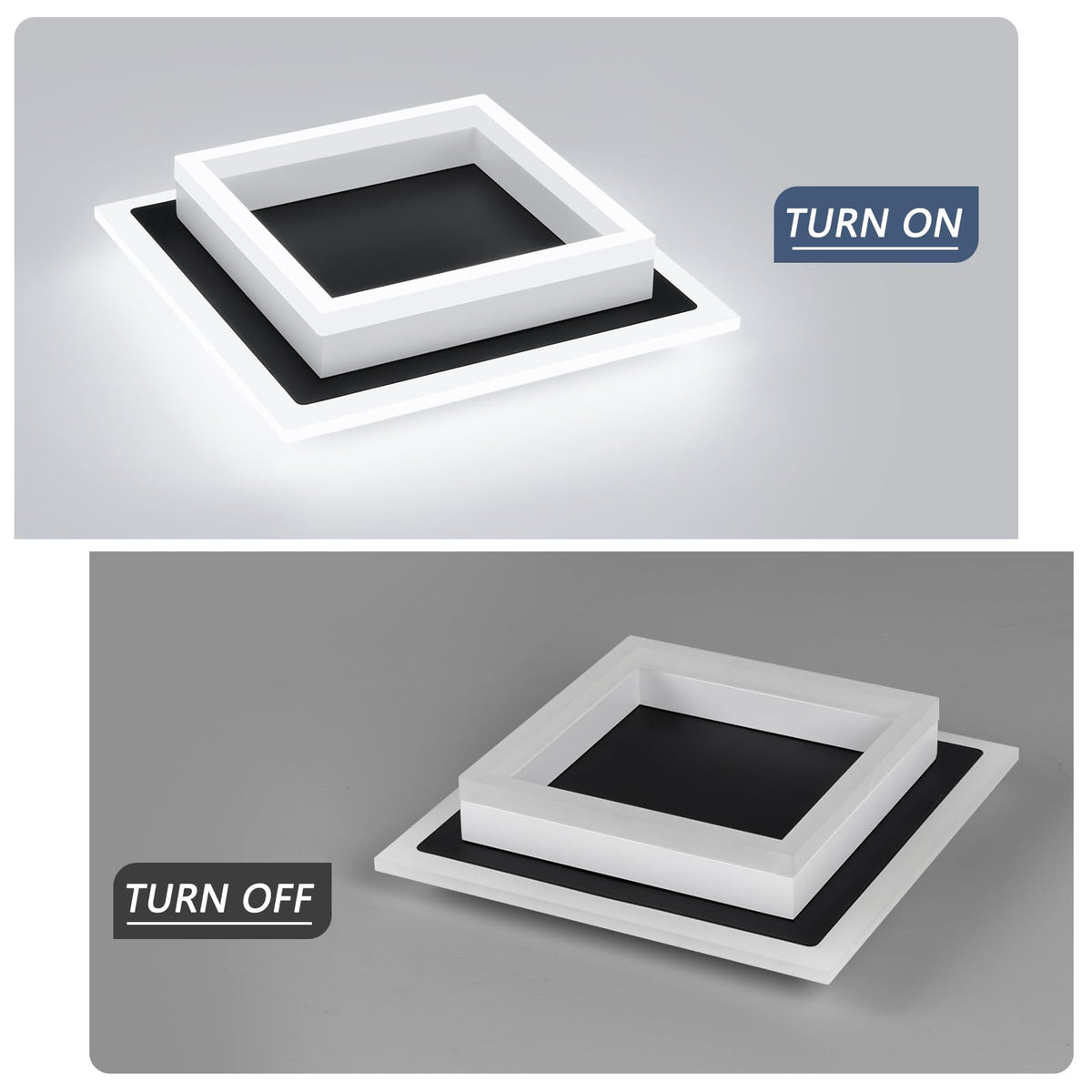 Eidisuny 32W Modern Led Ceiling Light Small Flush Mount Light Fixture 6000K Cold White Ceiling Lamp Square Hallway Lighting Fixtures For Living Room Bedroom Bathroom Kitchen (Black Cold White)