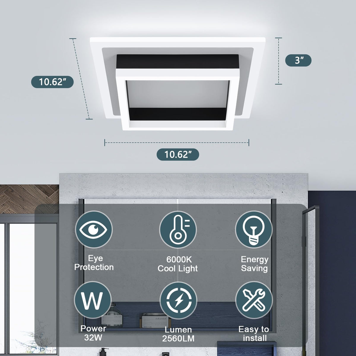 Eidisuny 32W Modern Led Ceiling Light Small Flush Mount Light Fixture 6500K Cold White Ceiling Lamp Square Hallway Lighting Fixtures For Living Room Bedroom Bathroom Kitchen (White Cold White)