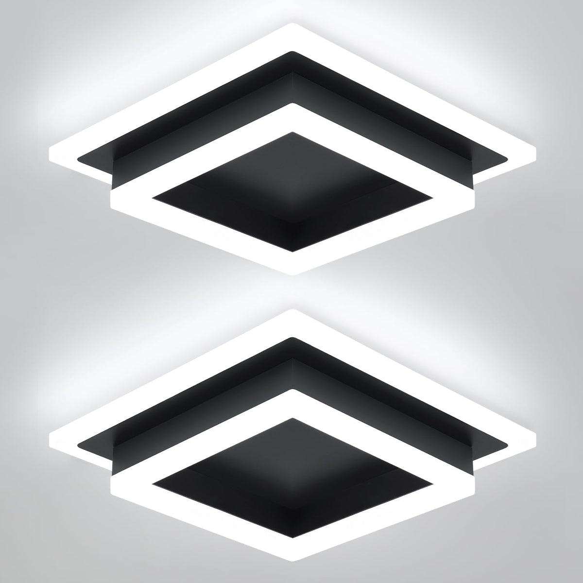Eidisuny Modern Led Ceiling Light Hallway Flush Mount Ceiling Light 32W 6000K Black Square Hallway Lighting Fixtures For Living Room Kitchen Bedroom (Black) 2 Pack