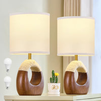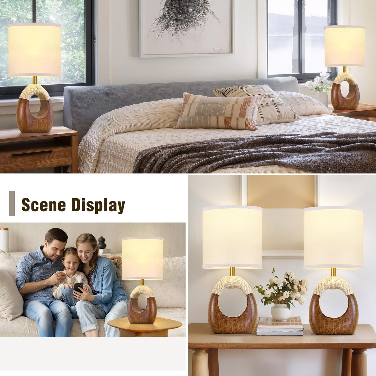 Ejiaxin Table Lamp For Bedroom Set Of 2 - Bedside Table Lamps With 3 Color Temperatures - Boho Rattan Lamps For Night Stands Sma